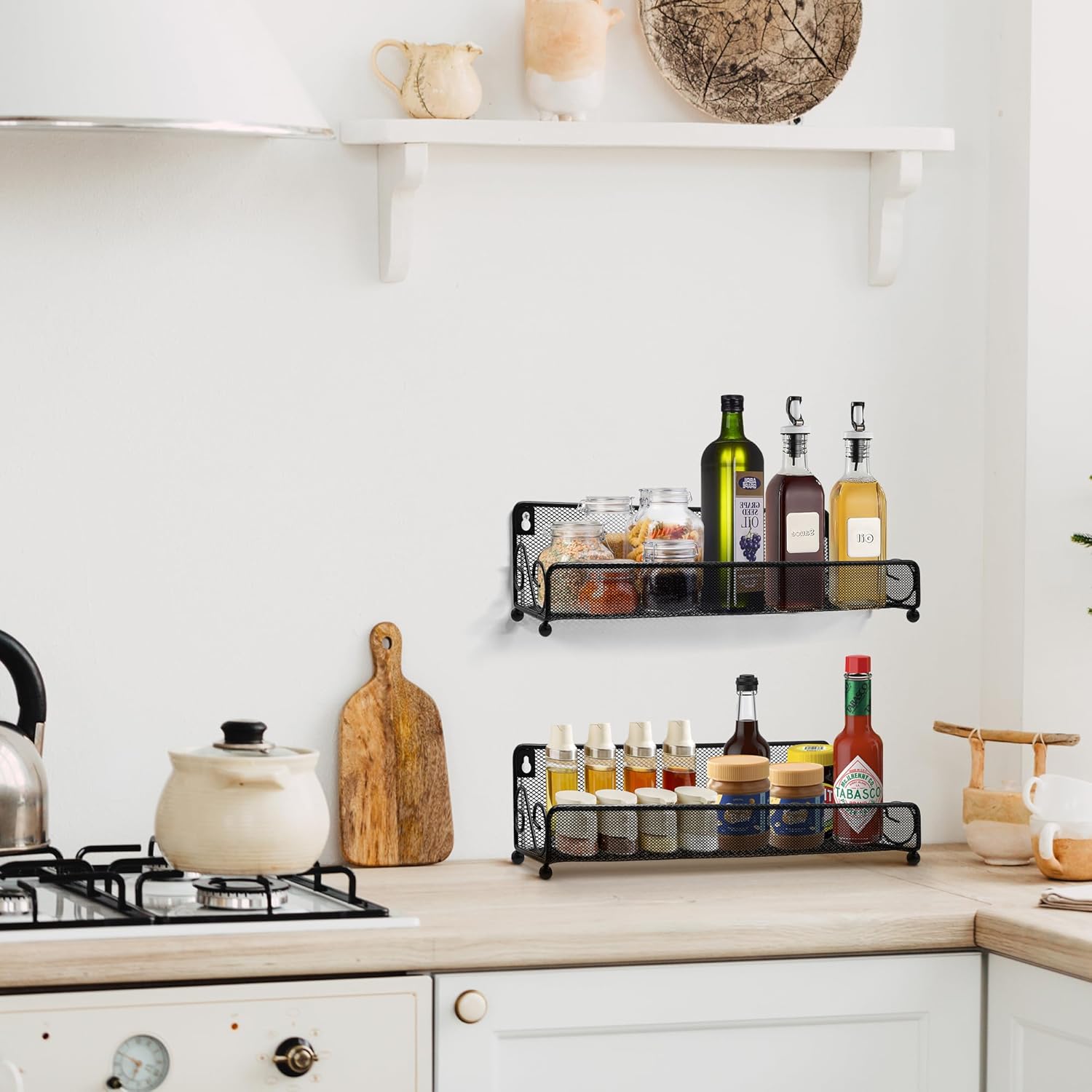 - Premium Metal Material and Stable Storage: The spice rack wall mounted is made of thickened high-strength carbon steel,is waterproof, rustproof, easy to clean.Our spice rack comes with additional 2.36-inch side guards and reinforced adhesive stickers to ensure safety and stability.