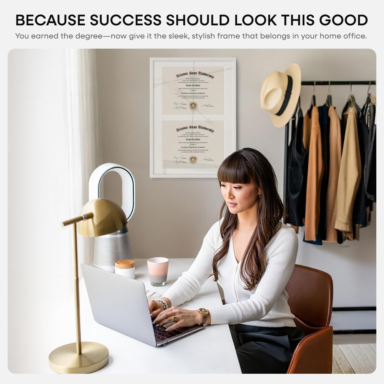 Homeforia 14x20 Double Diploma White Frame, High End Oak 14 x 20 Certificate Wood Frames with Mat for Two 8.5x11 Diplomas, 20x14 Wooden Dual Award Graduation Frames, Tempered Glass, Wall Kit, Set of 1