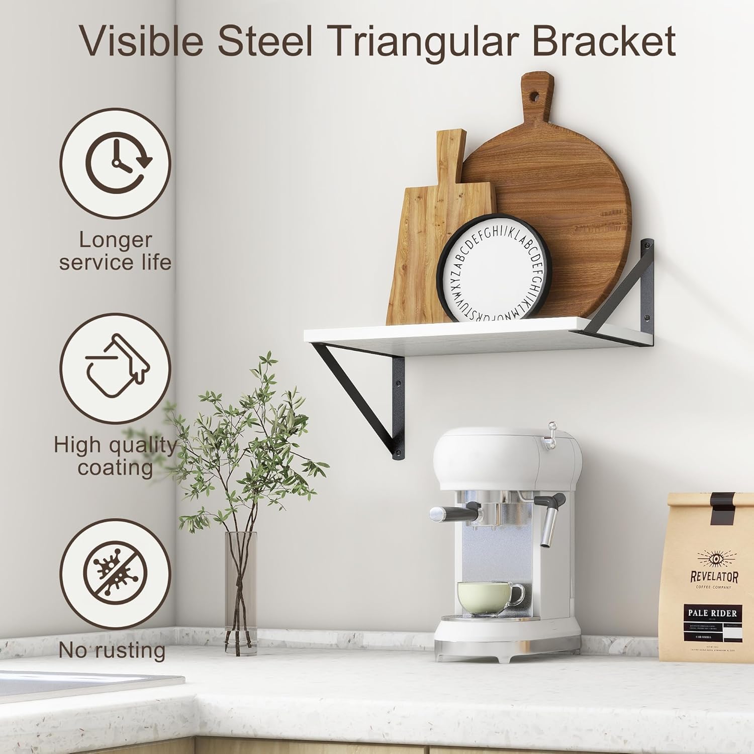 - ăFARMHOUSE RUSTIC WALL SHELFăThese floating shelves are made of premium engineered wood board and visible triangular bracket. The rustic wooden grain surface add character and warmth to any modern or traditional interior with these deep floating shelves, contrast shelves at staggering heights on the wall or mount side-by-side or in the corner for a clean streamlined look.