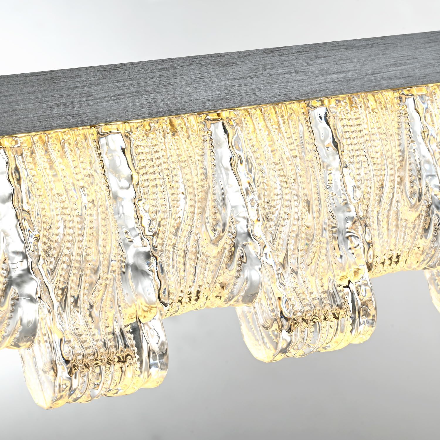 - High Quality Linear Chandelier: This restaurant island light adopts silver gray brushed aluminum alloy lamp body and clear textured acrylic, energy-saving LED light with light source, energy-saving and efficient, high transparency lampshade makes the light more uniform and soft