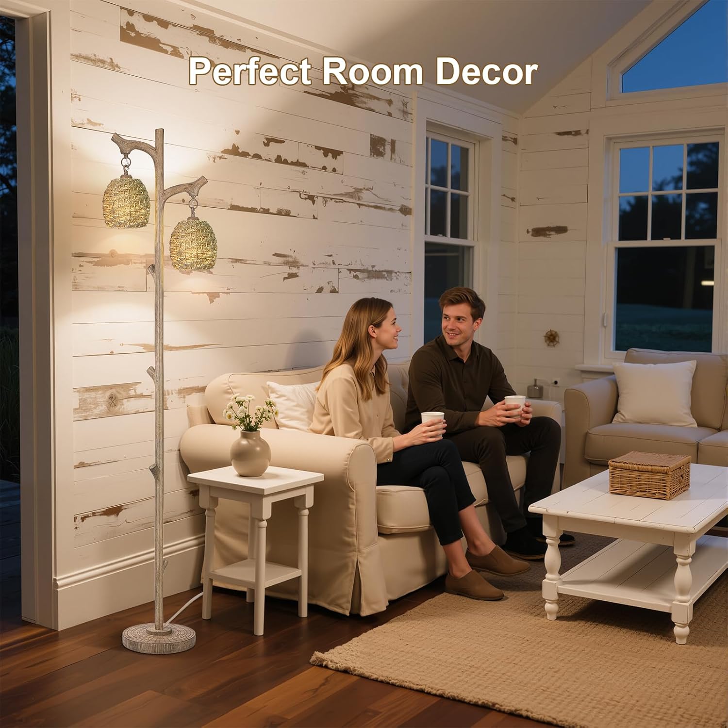 - FARMHOUSE FLOOR LAMPS, EXCELLENT ROOM DECOR: Floor Lamp for living room serves both as functional light source and decorative piece, bedroom floor lamp goes great with variety of decor, ideal for living room, bedroom, nursery, office, dorm, etc. Rustic floor lamp, adds a delightful touch of traditional charm and even perfectly for Christmas decoration, Halloween decoration and so on