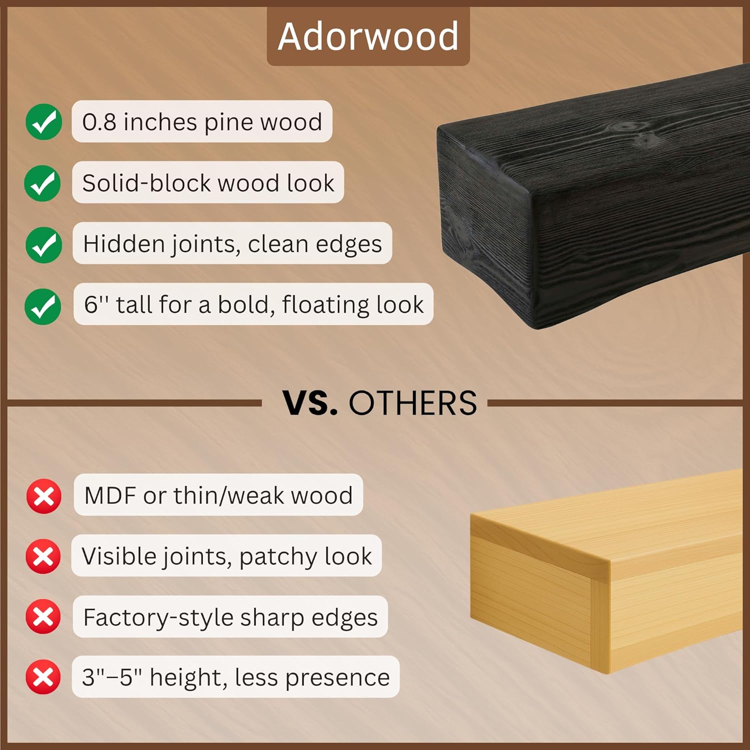 Handmade Fireplace Mantel Shelf, Extra Wide Rustic Wood Mantles for Over Fireplace, Wall Mounted Floating Mantel Shelves for Living Room Decor (Ebony, 72 inches)