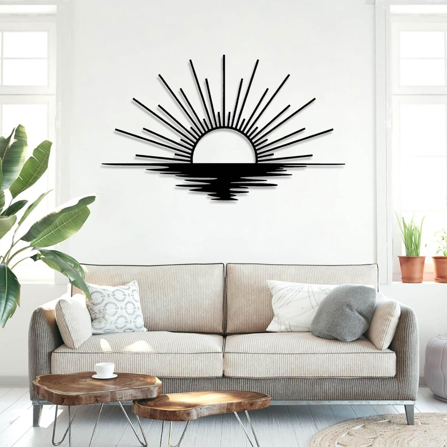 - Sunrise Metal Wall Art: Themed around the rising sun, this elegant metal sun wall decor finish with minimalist line art fixes the sun at the moment it rises over the eastern horizon to add a warm touch to any room you wish to decorate, it's the first light of the morning that belongs to you