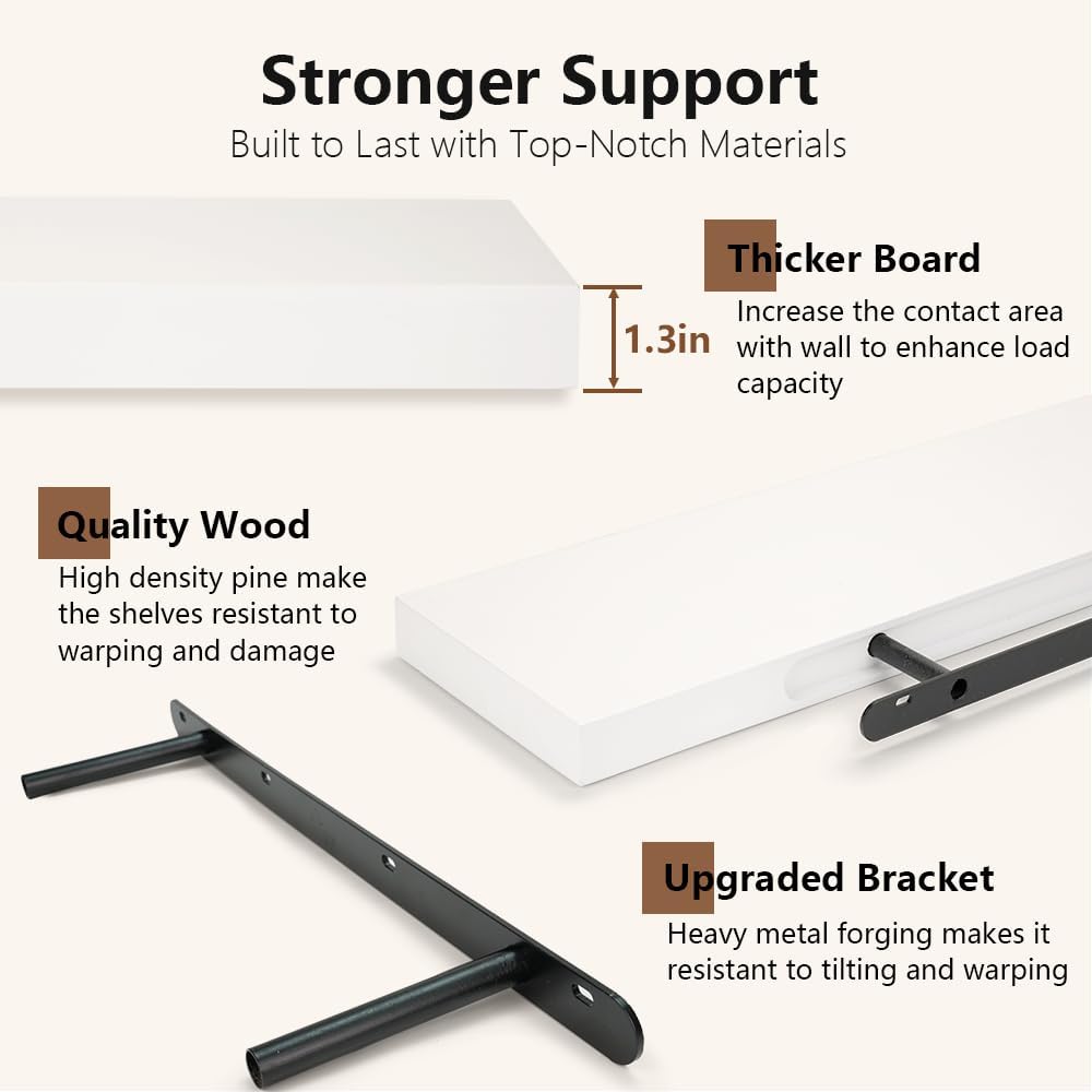 - Heavy-duty Support: Thicken to 1.3 inch, strengthen the contact surface with the wall to enhance stability. With high-quality upgraded hardware, it provides exceptional support