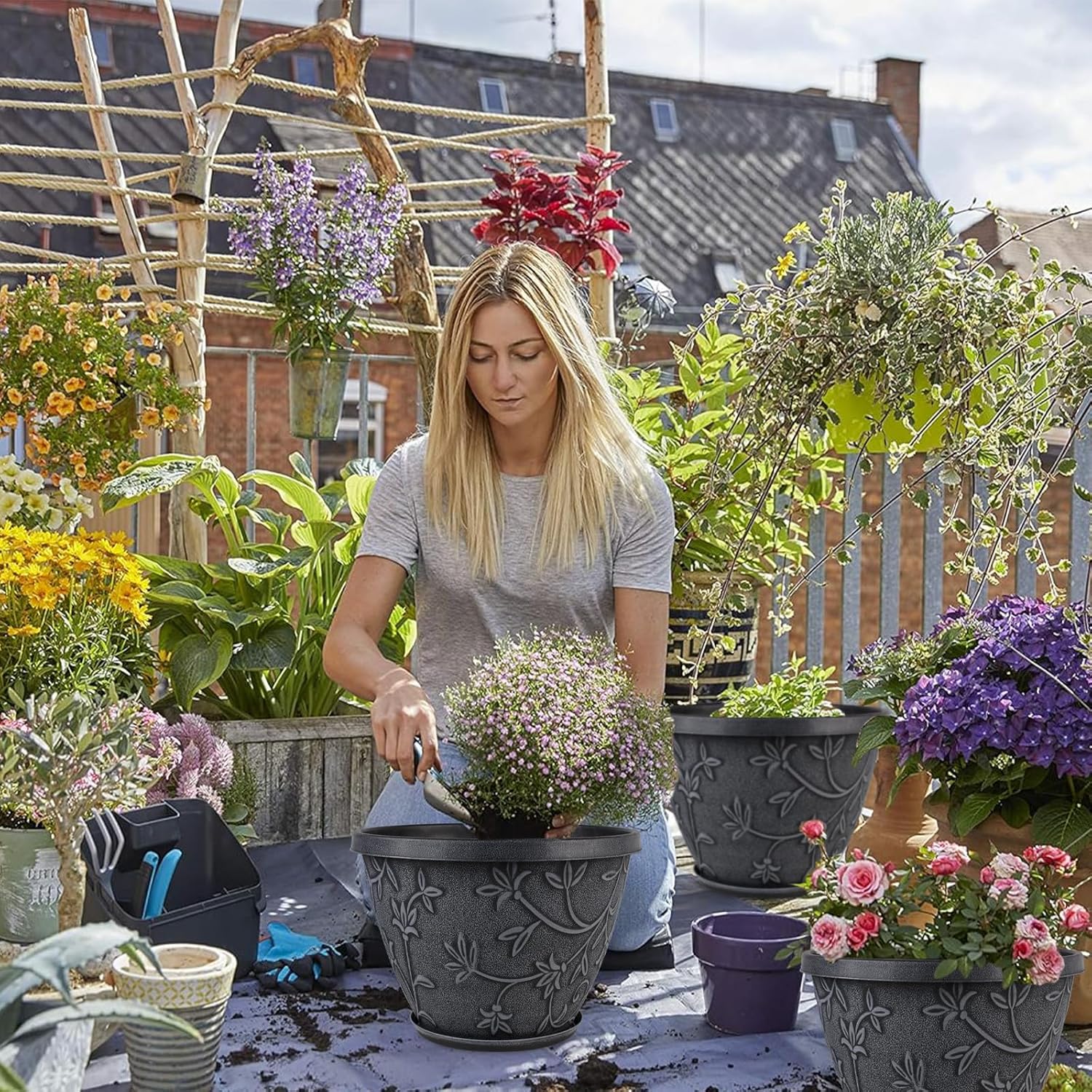 - 【High Quality Materials】10 inch flower pots are made with recyclable ABS,lightweight, so you can lift it easily. Outdoor planter resistant to withstand harsh sunlight and harsh winters without breaking down over time or faded,suitable for home and garden herbs,mints,cactus and snake plants for Plants Growth, you can use it indoors and outdoors freely.