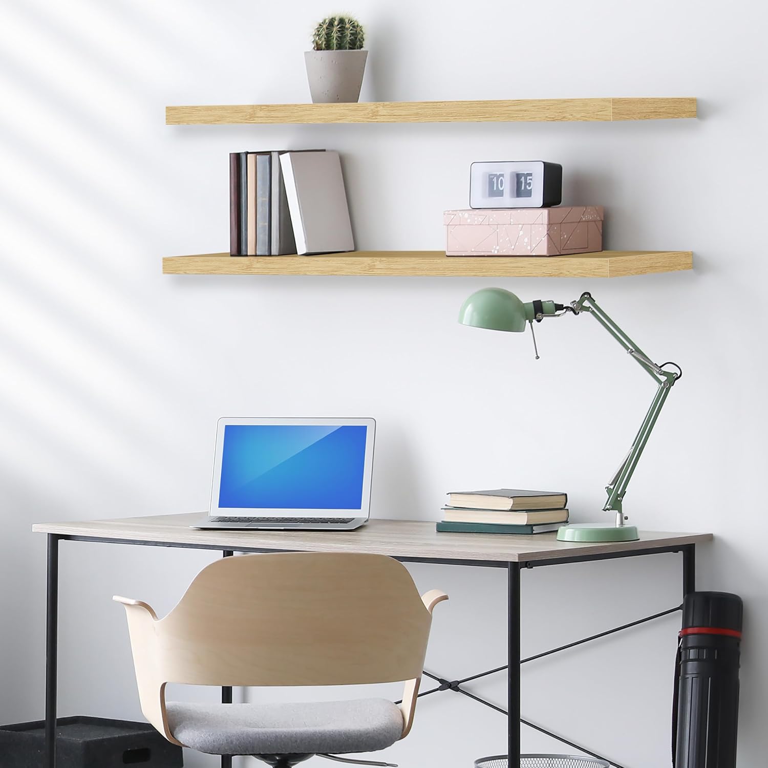 - Floating Shelves for Wall: Display charming showpieces, trophies, photo frames, decorative items, and other prized possessions while offering functional storage with the wooden floating shelves by Sorbus. Enhance home decor, bathroom decor, and living room decor. Use shelves to fill in empty wall space above a desk, fireplace, entryway, vanity, or between windows. Each floating shelf measures approximately 48” x 9” x 1.5”