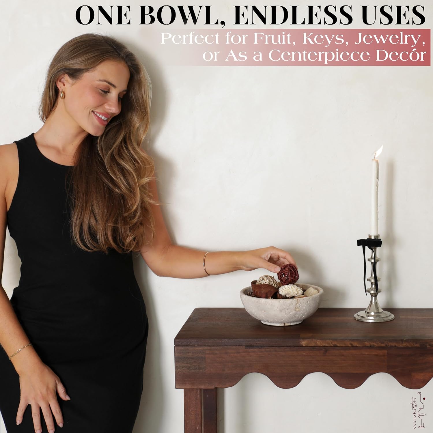 - Premium Stone Tabletop Accent: Carved from natural limestone and weighing nearly 4 lbs, this beige decorative bowl feels as solid as it looks. The felted base keeps it secure and scratch-free, so you can place it anywhere with confidence