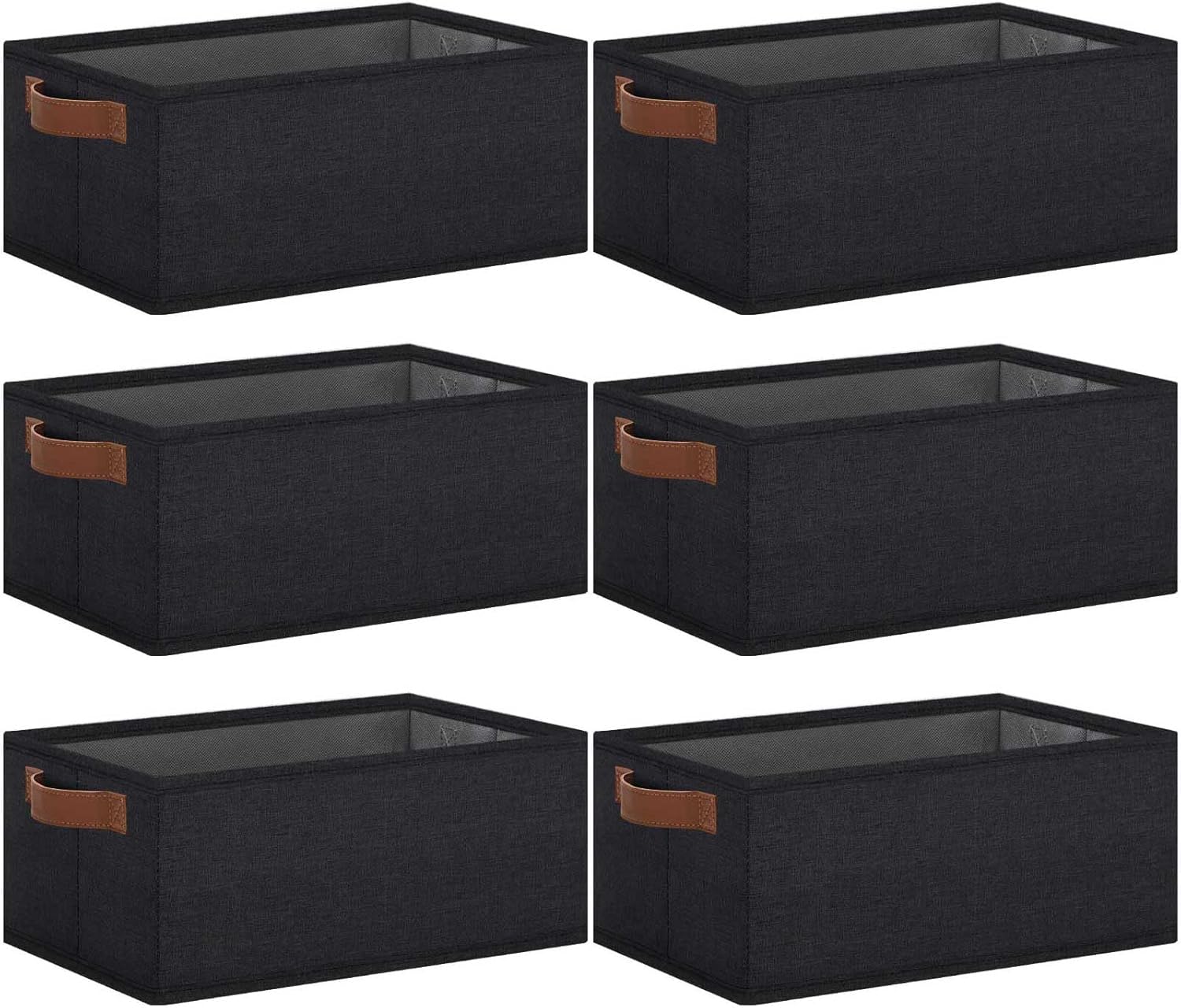 GhvyenntteS Small Fabric Storage Bins 6 Pack, 11.8" x 7.87" x 5.11" Storage Basket with Leather Handles, Closet Storage Bins for Shelves, Storage Baskets for Shelves, DVD Storage (Black)
