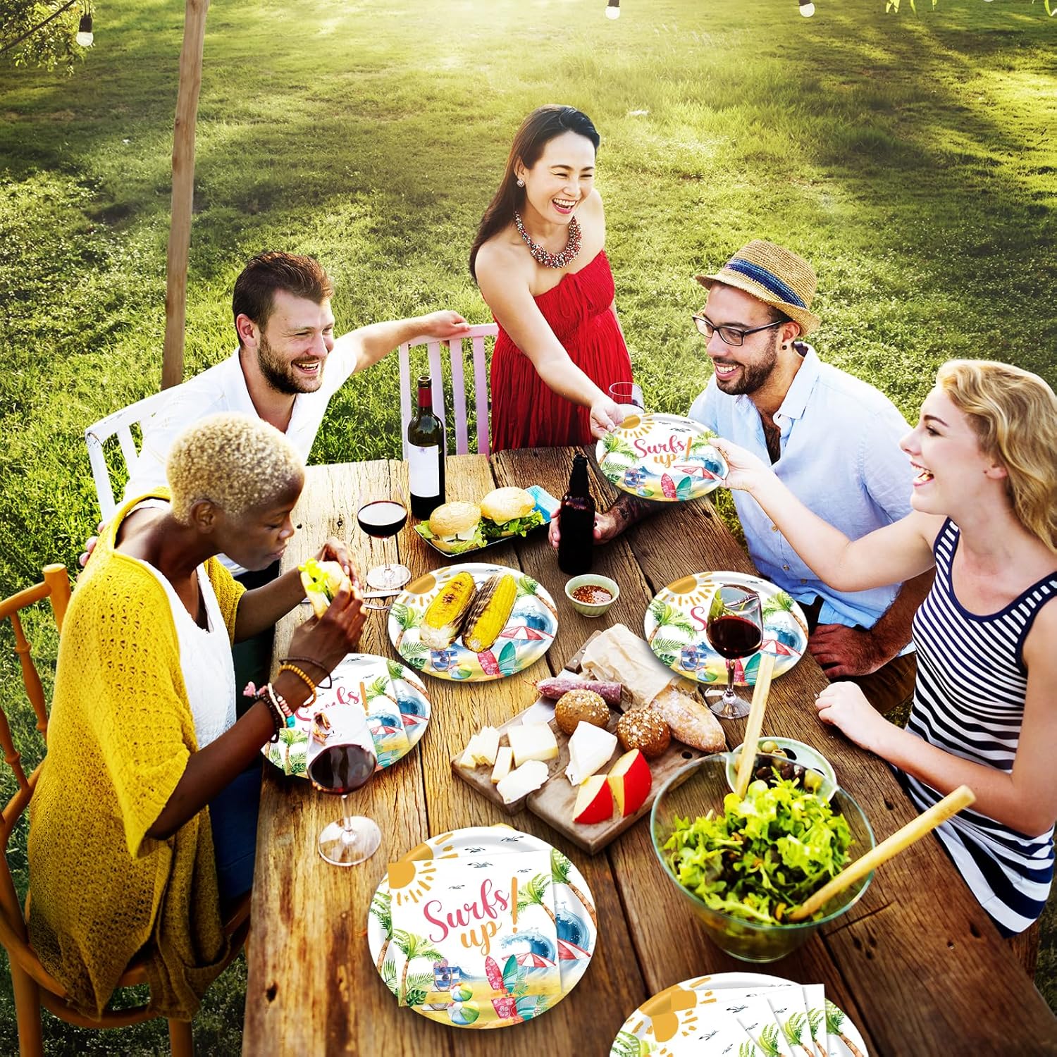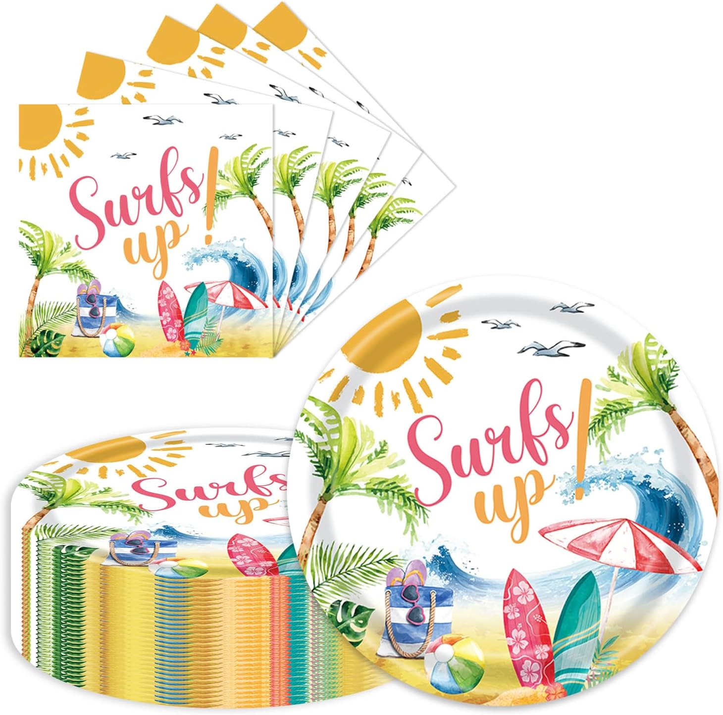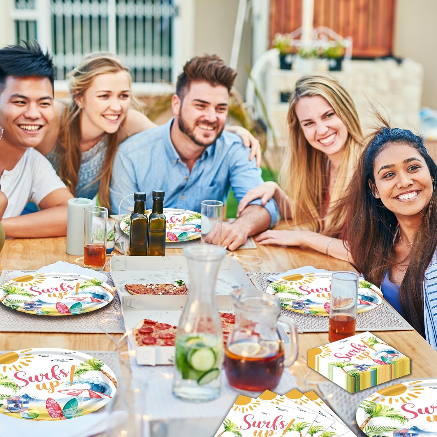 40 Pcs Summer hawaiian Party Dessert Plates and Napkins Sets pool party plates surf up 9" Paper Plates and 6.5" Napkins Party Supplies Tableware Decoration For Birthday Picnic
