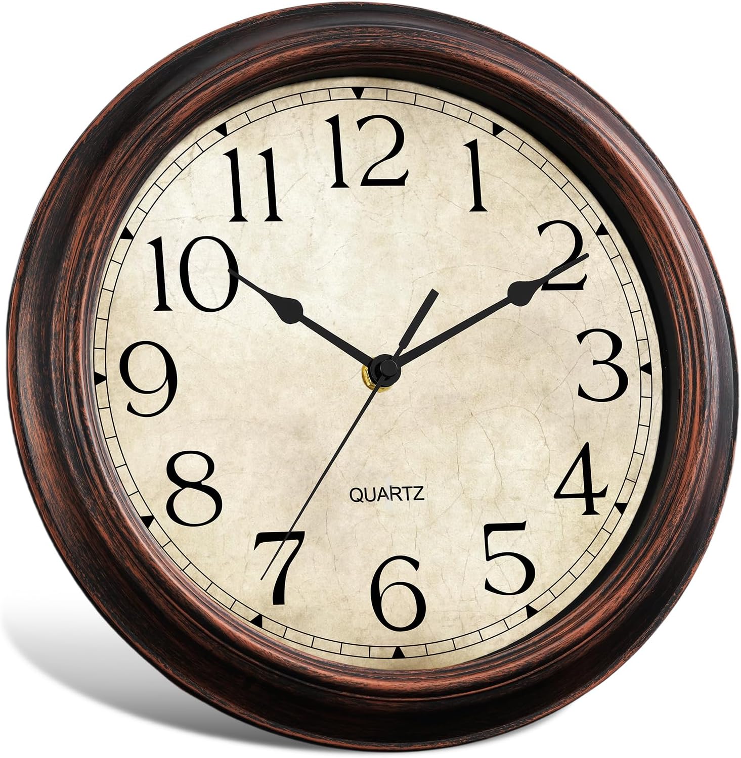 Wall Clock Battery Operated Vintage Silent Non-Ticking Analog Wall Clocks 8.5 Inch Small Retro Clock Decorative for Kitchen Bathroom Bedroom Home Office (Bronze)