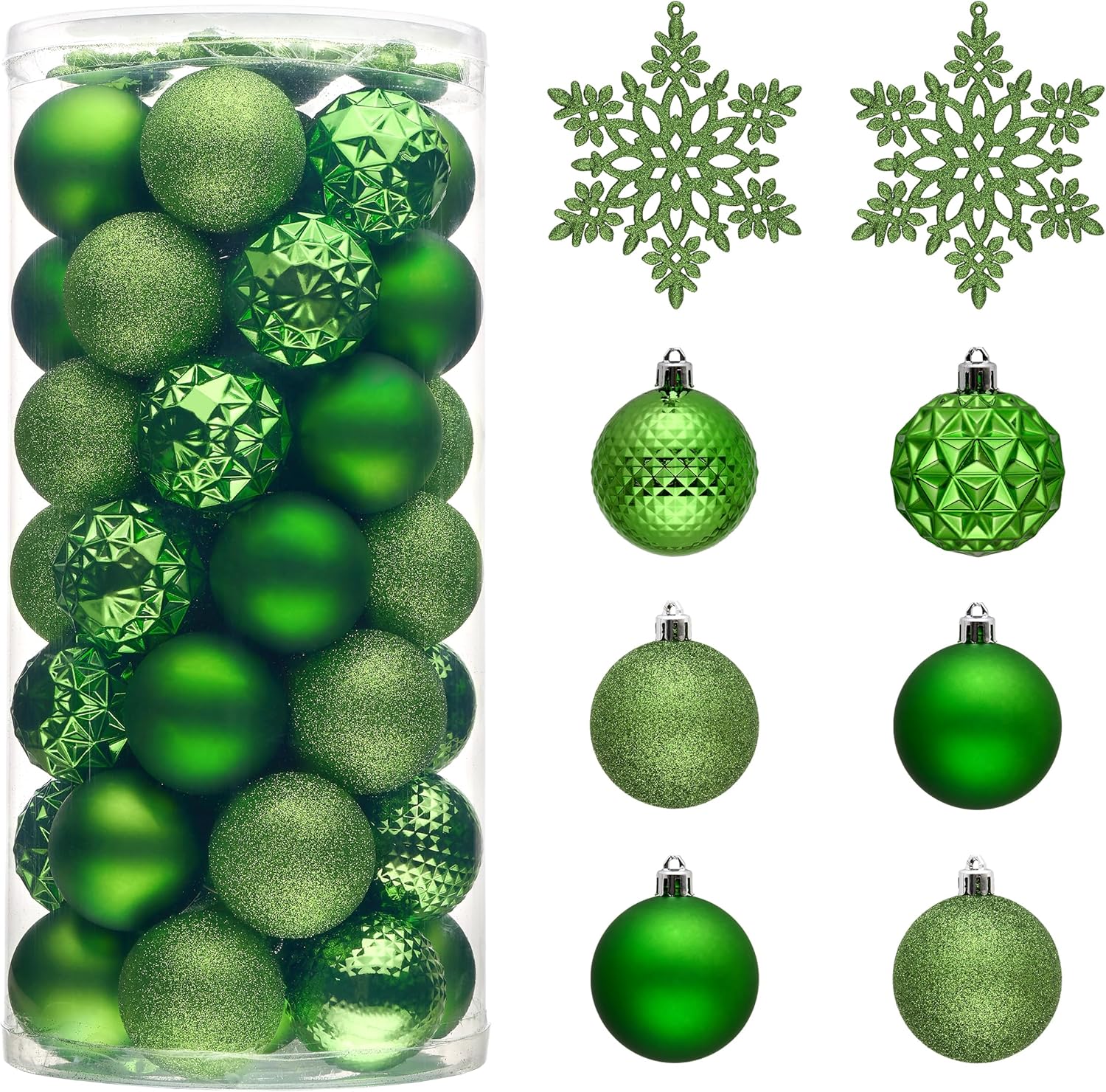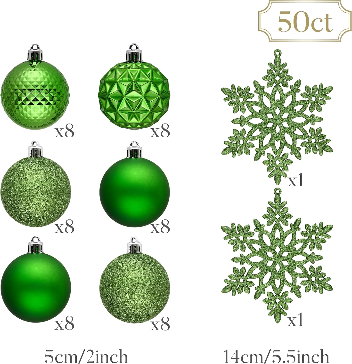 - 【Package and Size】This ornament ball set include 50pcs Christmas ornaments measuring 2 inches in diameter, featuring seamless connections for a polished look