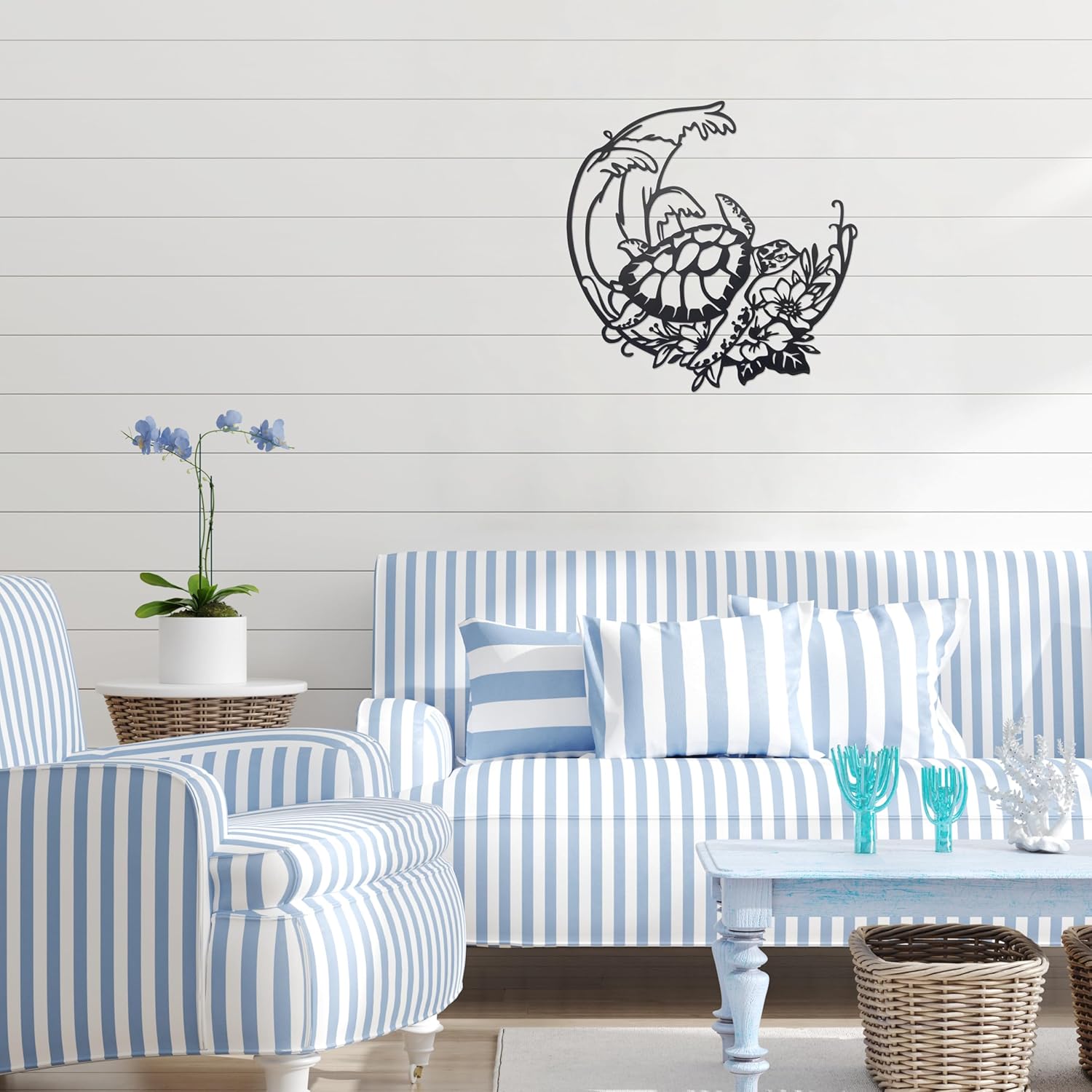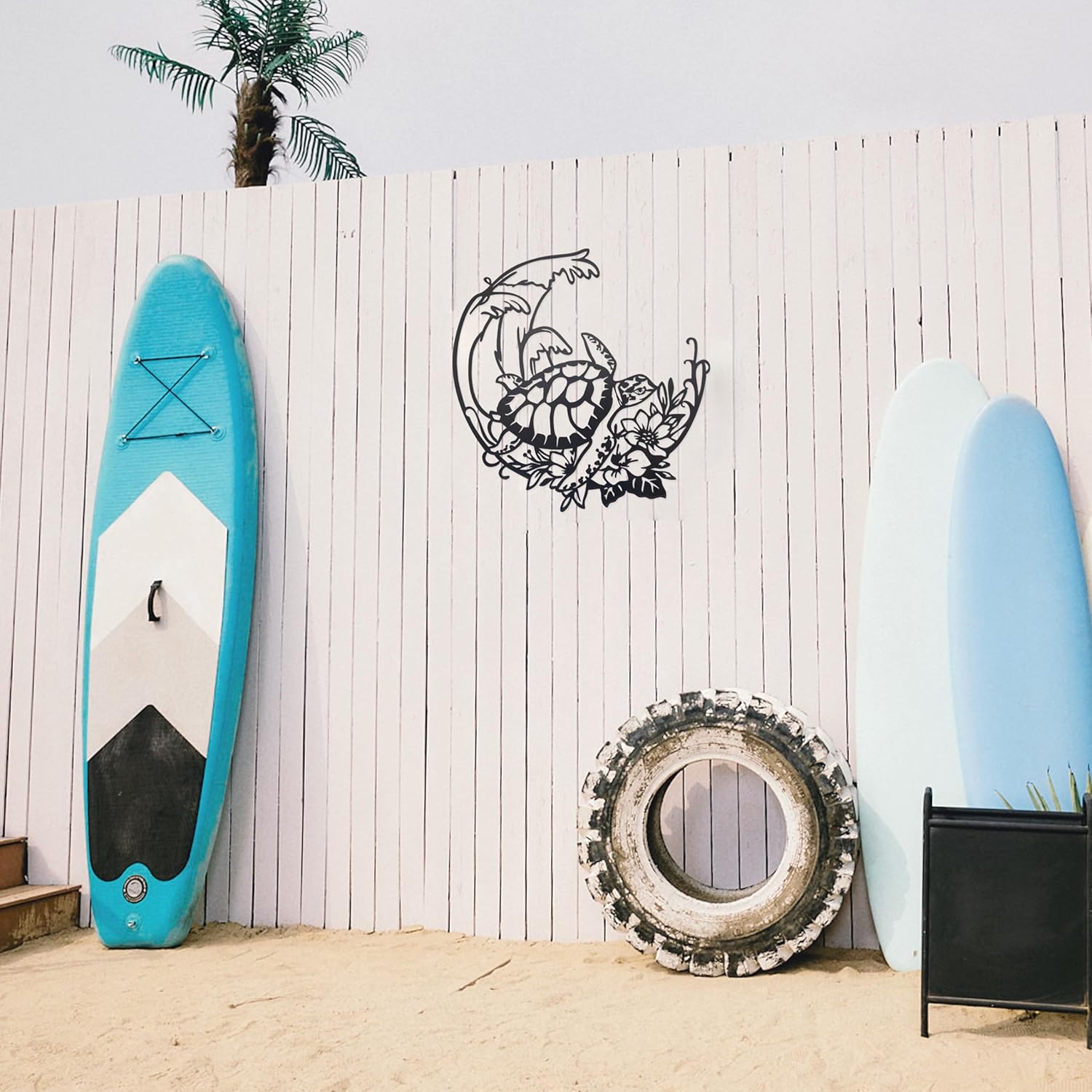 Sea Turtle Wall Decor Beach Theme Art Metal Coastal Turtle Decor Wall Hanging Beach Sculpture Metal Farmhouse Wall Art Room Ornament for Pool Home Lake House Bathroom Indoor Outdoor 11.4" x 11.4"