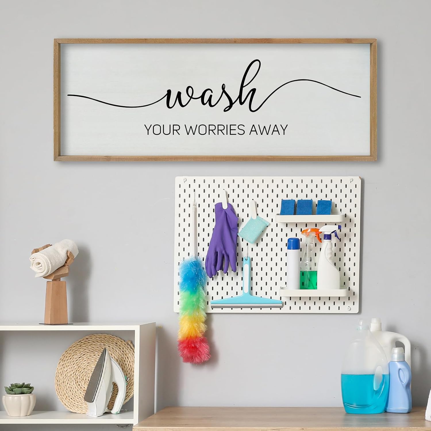 SRSZHIYUE Wash Your Worries Away Bathroom Sign Wall Art 40"x15" Funny Restroom Toilet Large Wood Framed Hanging Decor (Wood)
