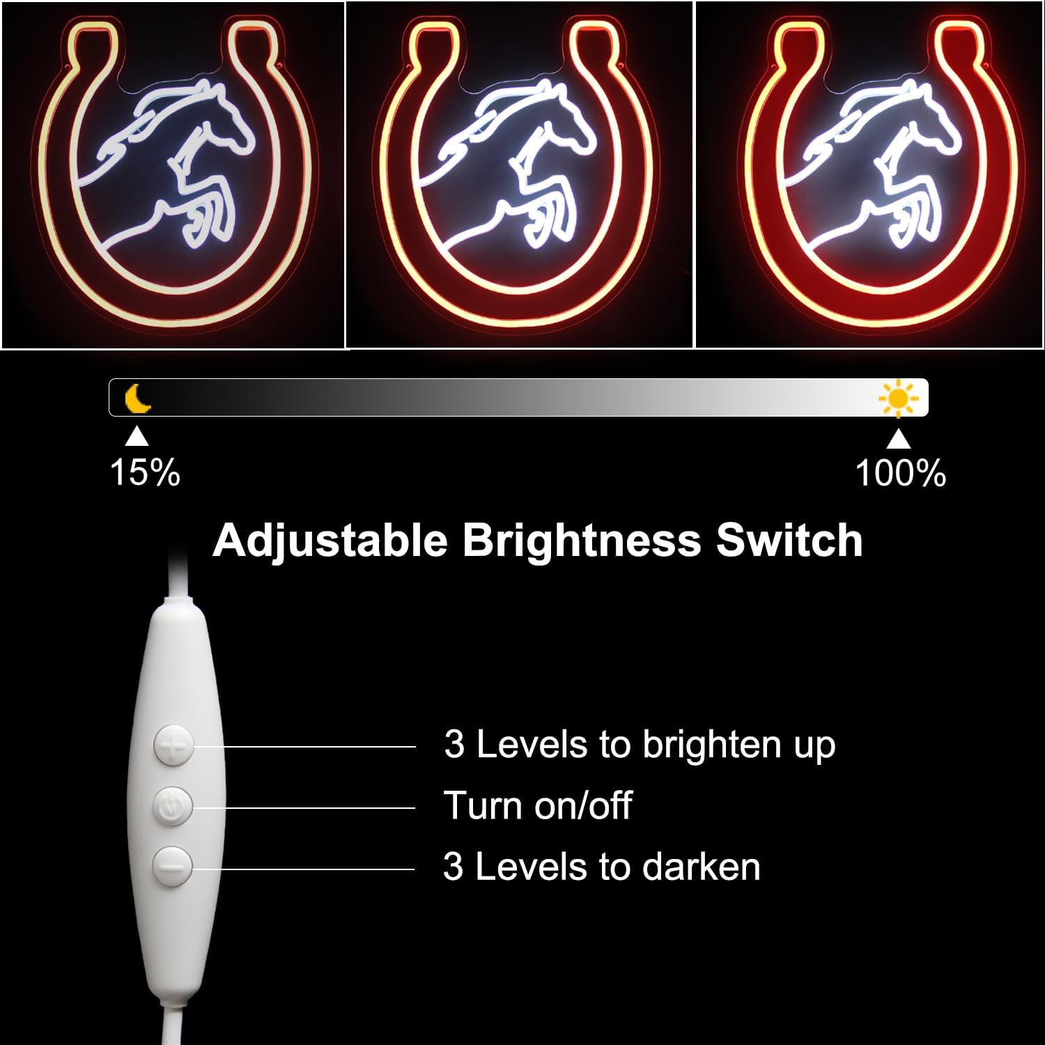 • With Dimmable Switch - White horse neon sign for wall comes equipped with a dimmer switch, allowing for various lighting preferences. Whether hosting a Derby-themed party or creating a cozy barn-inspired ambiance, this equestrian neon wall light can satisfy you.