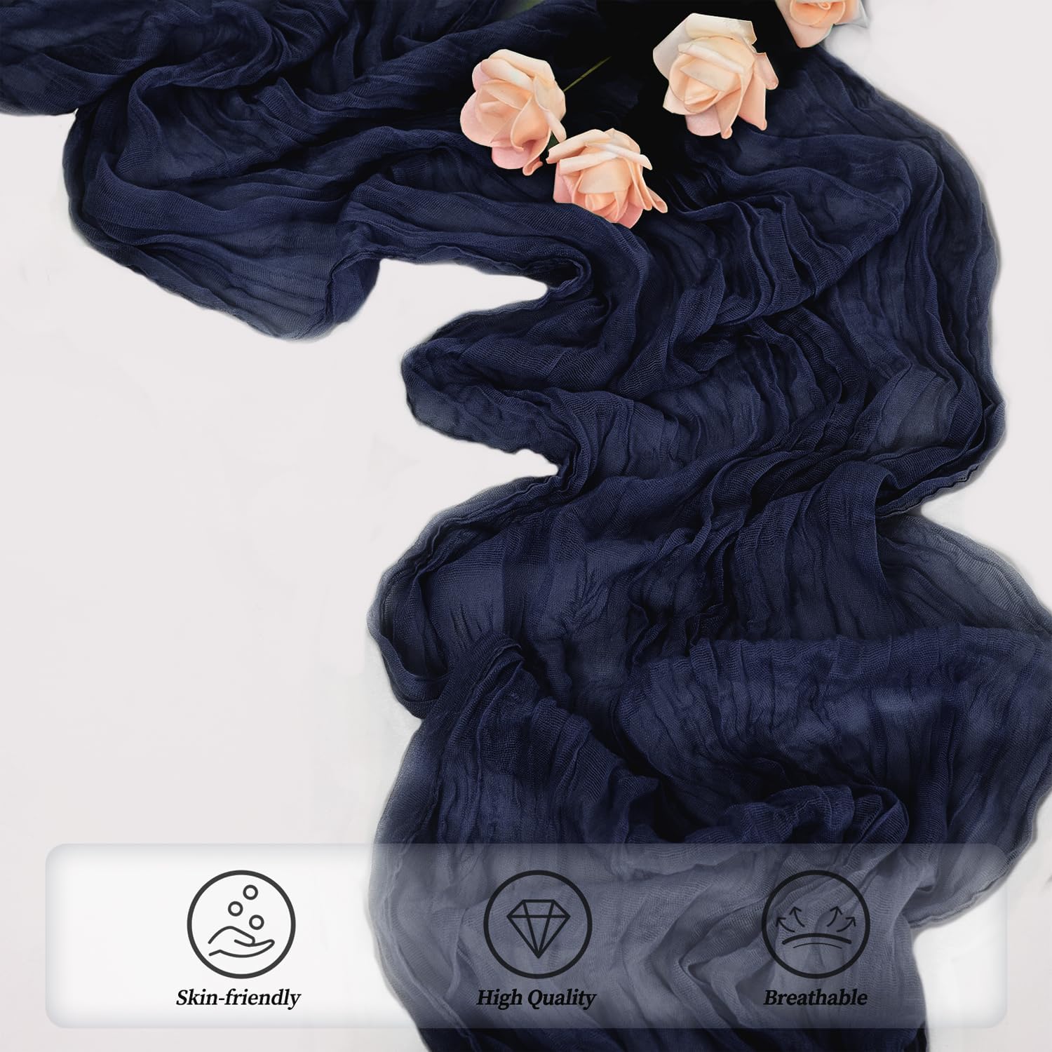- Cheesecloth Table Runner Size: You will receive 12 navy blue cheesecloth tablerunner, each measuring 20 x 120 inches. The quantity is sufficient for you to decorate various romantic occasions. It can decorate most shaped tables, such as rectangular tables, round tables, and cocktail tables. It is long enough to decorate a large table and be placed perfectly and elegantly on the tabletop, adding a romantic atmosphere to your occasion.