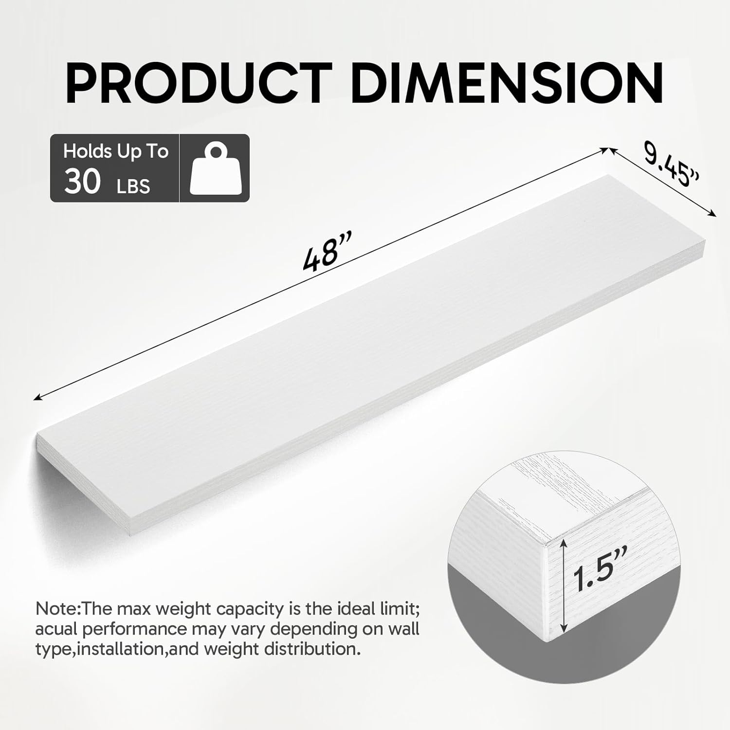 • ๐’๐ฉ๐š๐œ๐ข๐จ๐ฎ๐ฌ & ๐…๐ฎ๐ง๐œ๐ญ๐ข๐จ๐ง๐š๐ฅ ๐’๐ข๐ณ๐ž โ€“ At ๐Ÿ’๐Ÿ– ๐ข๐ง๐œ๐ก๐ž๐ฌ ๐ฅ๐จ๐ง๐ , these shelves ๐ฉ๐ซ๐จ๐ฏ๐ข๐๐ž ๐š๐ฆ๐ฉ๐ฅ๐ž ๐ฌ๐ฉ๐š๐œ๐ž ๐Ÿ๐จ๐ซ ๐จ๐ซ๐ ๐š๐ง๐ข๐ณ๐ข๐ง๐  ๐จ๐ซ ๐ฌ๐ก๐จ๐ฐ๐œ๐š๐ฌ๐ข๐ง๐  ๐ข๐ญ๐ž๐ฆ๐ฌ ๐ฐ๐ข๐ญ๐ก๐จ๐ฎ๐ญ ๐œ๐ซ๐จ๐ฐ๐๐ข๐ง๐  ๐ฒ๐จ๐ฎ๐ซ ๐ฐ๐š๐ฅ๐ฅ. Perfect for displaying essentials or decorative accents
