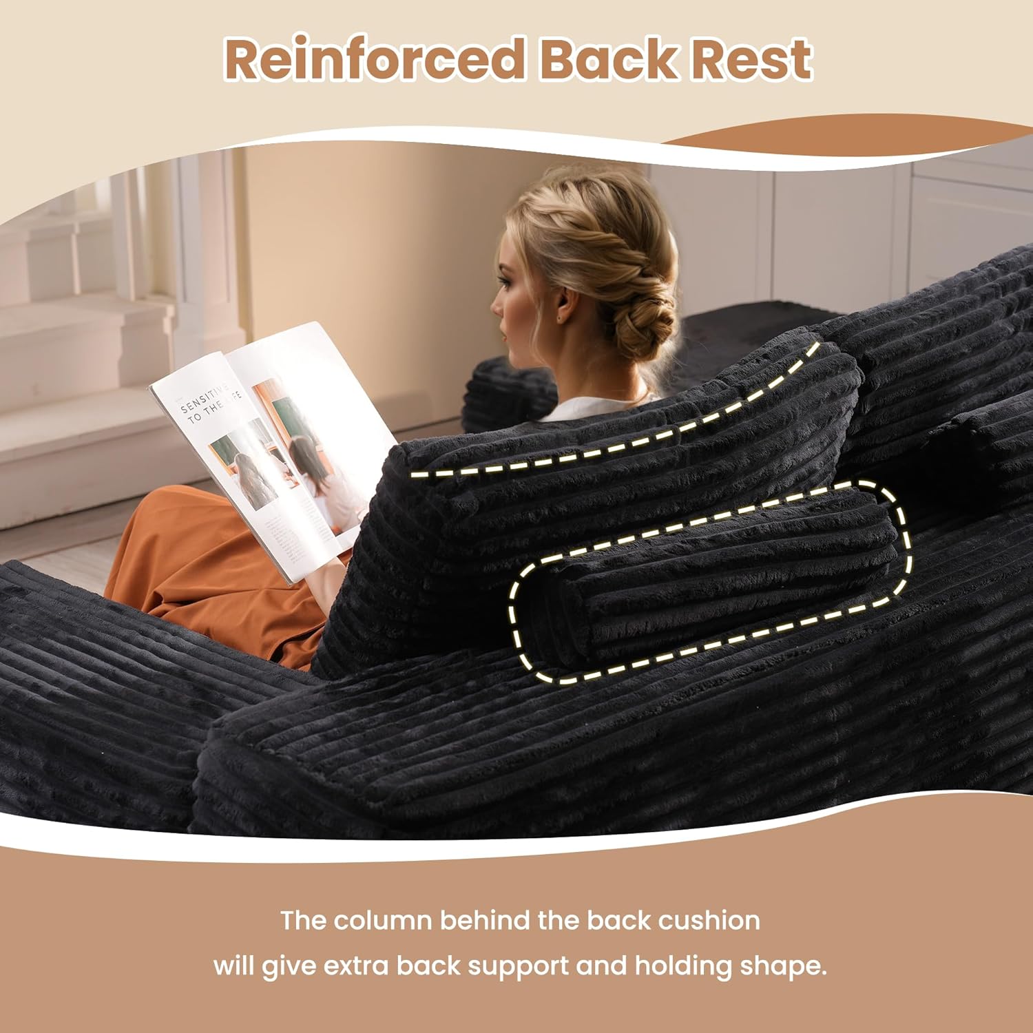 HOOOWOOO Cloud Sectional Couches for Living Room,Modular Sectional Sofa No Assembly,136X133 Inch Plush Corduroy Large G Shaped Floor Couch Set with Deep Seat Chaise Ottoman(Black)