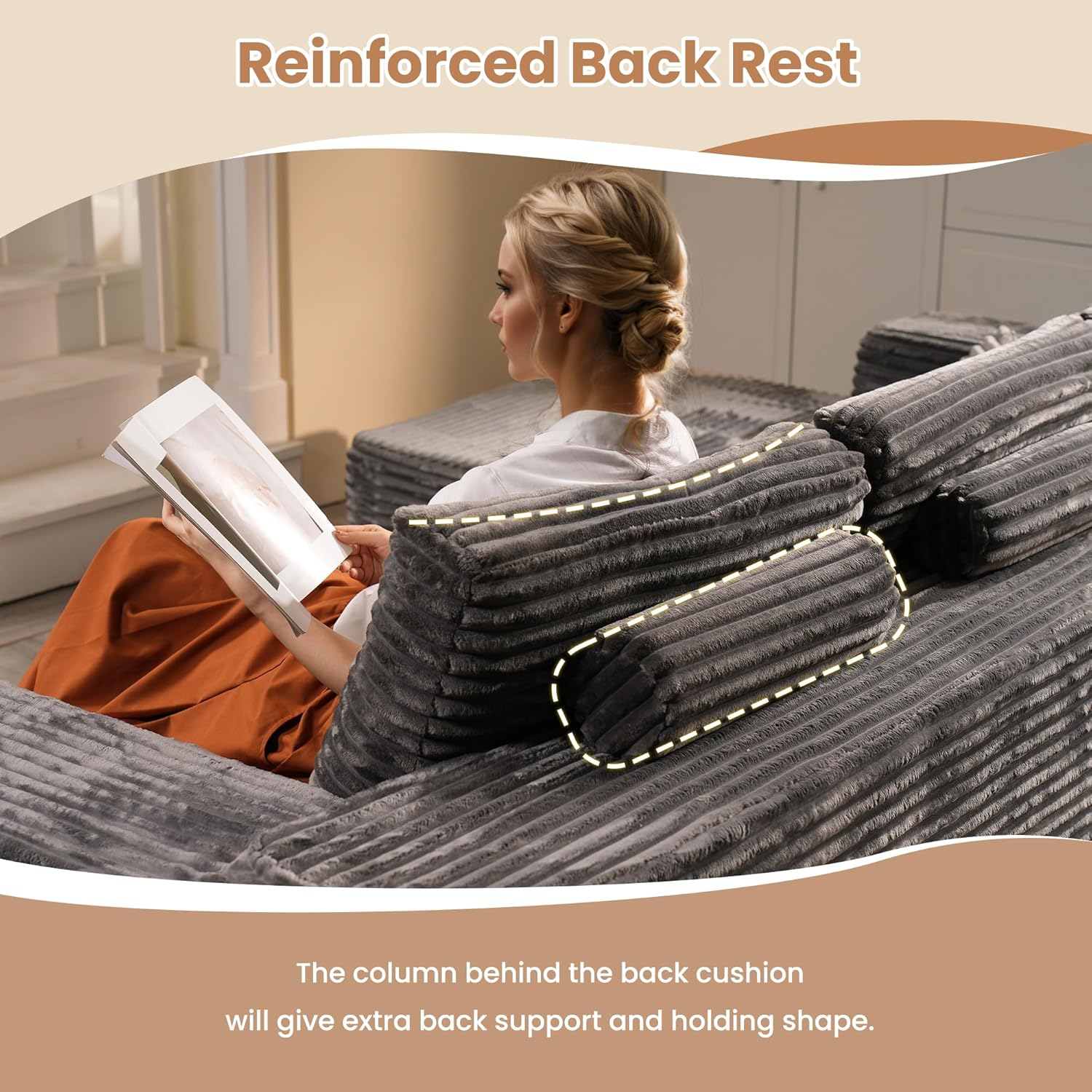HOOOWOOO Cloud Sectional Couches for Living Room,Modular Sectional Sofa No Assembly,136X133 Inch Plush Corduroy Large G Shaped Floor Couch Set with Deep Seat Chaise Ottoman(Gray)
