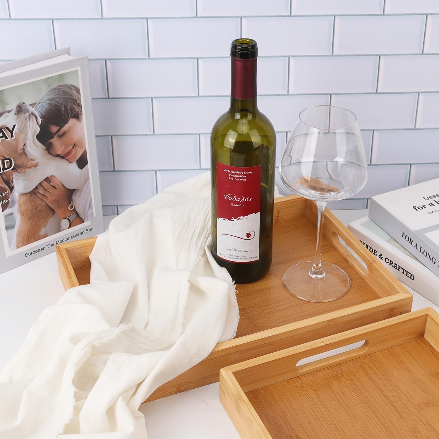 2 Pack Large Bamboo Serving Tray with Handles, 14 x 10 inch Wooden Dinner Tray, Home Kitchen Breakfast Trays for Living Room Bedroom Kitchen Dinner Table, Picnic