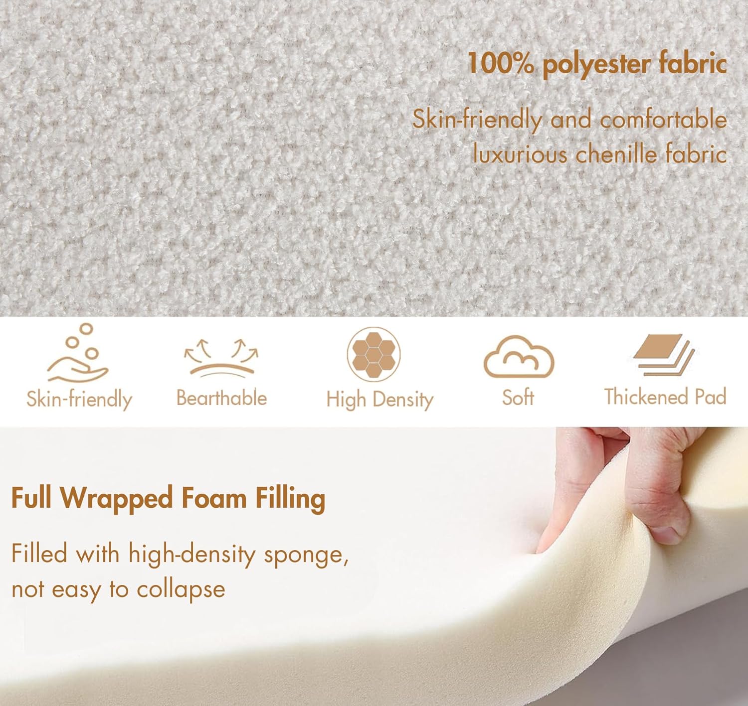 - Durable Finish: Designed in concise style making each piece unique. Breathable and soft chenille all-wrap fabric finish makes these upholstered ottoman benches wear-resistant and stain-resistant in daily use