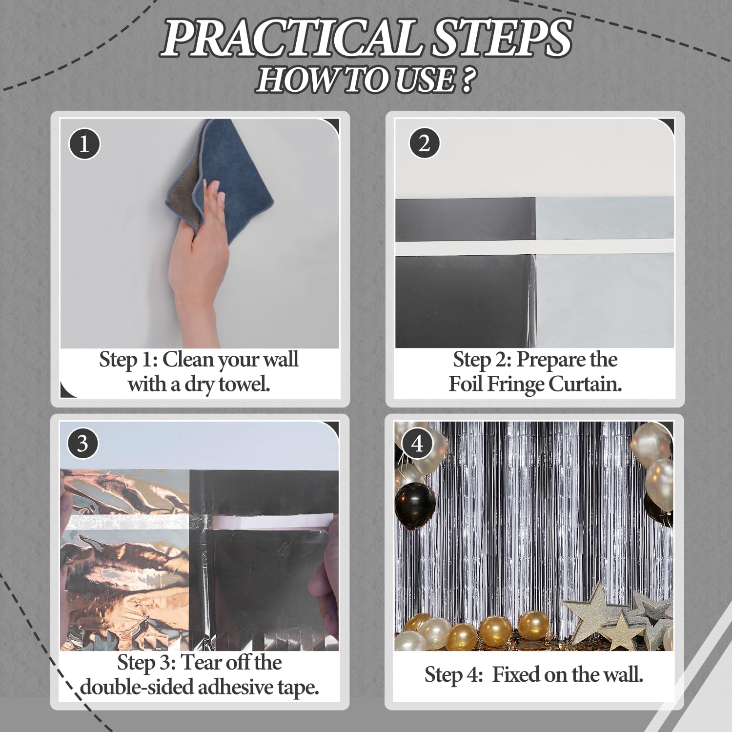 - 【Easy and Convenient Installation】These foil fringe curtains are easy to install and can be quickly hung on smooth surfaces using the included double-sided adhesive tape. No extra tools or materials required.