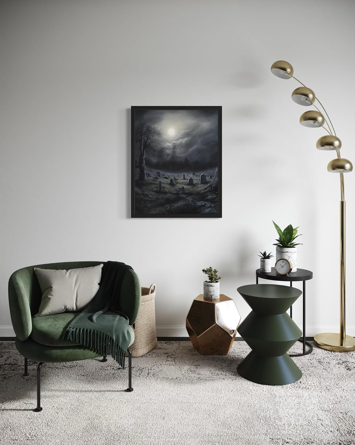 Gothic Graveyard Poster Art Print, Halloween Scary Vintage Wall Art Academia Spooky Painting Decoration for Horror Prints, Posters Bedroom Decor 89 (Gothic Graveyard, 11 x 14 inches, Unframed)
