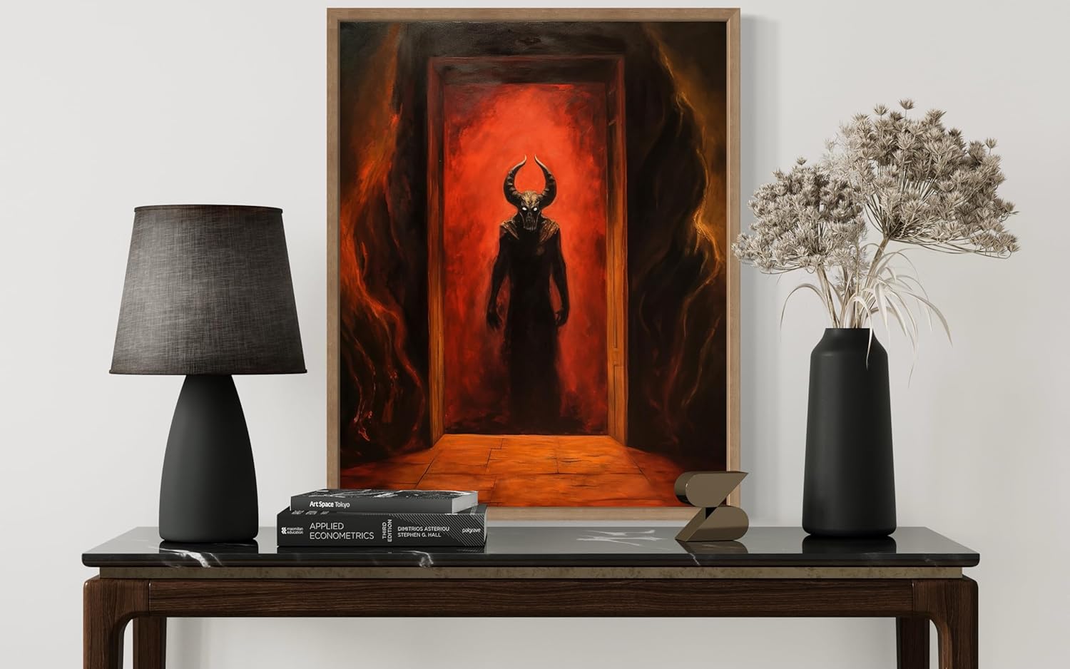 Satan and Hell Poster Art Print, Halloween Scary Vintage Wall Art Academia Spooky Painting Decoration for Horror Prints, Gothic Posters Bedroom Decor 89 (Satan and Hell, 16 x 20 inches, Wood Frame)