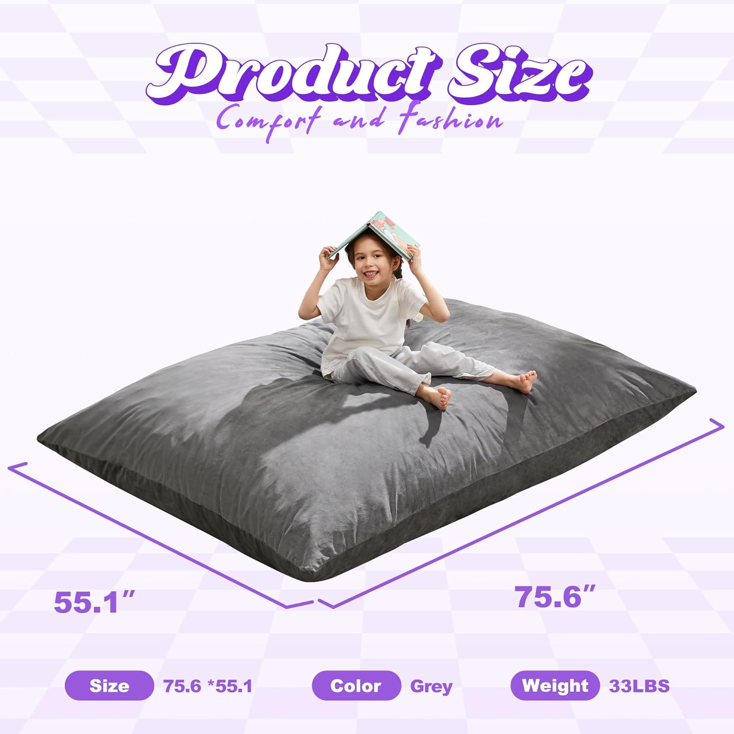Hobestluk 3 in 1 Bean Bag Chair Giant Bean Bag Chairs for Adults with Velvet Cover Convertible Bean Bag Floor Cushion with Machine Washable Cover for Living Room (Velvet Grey)