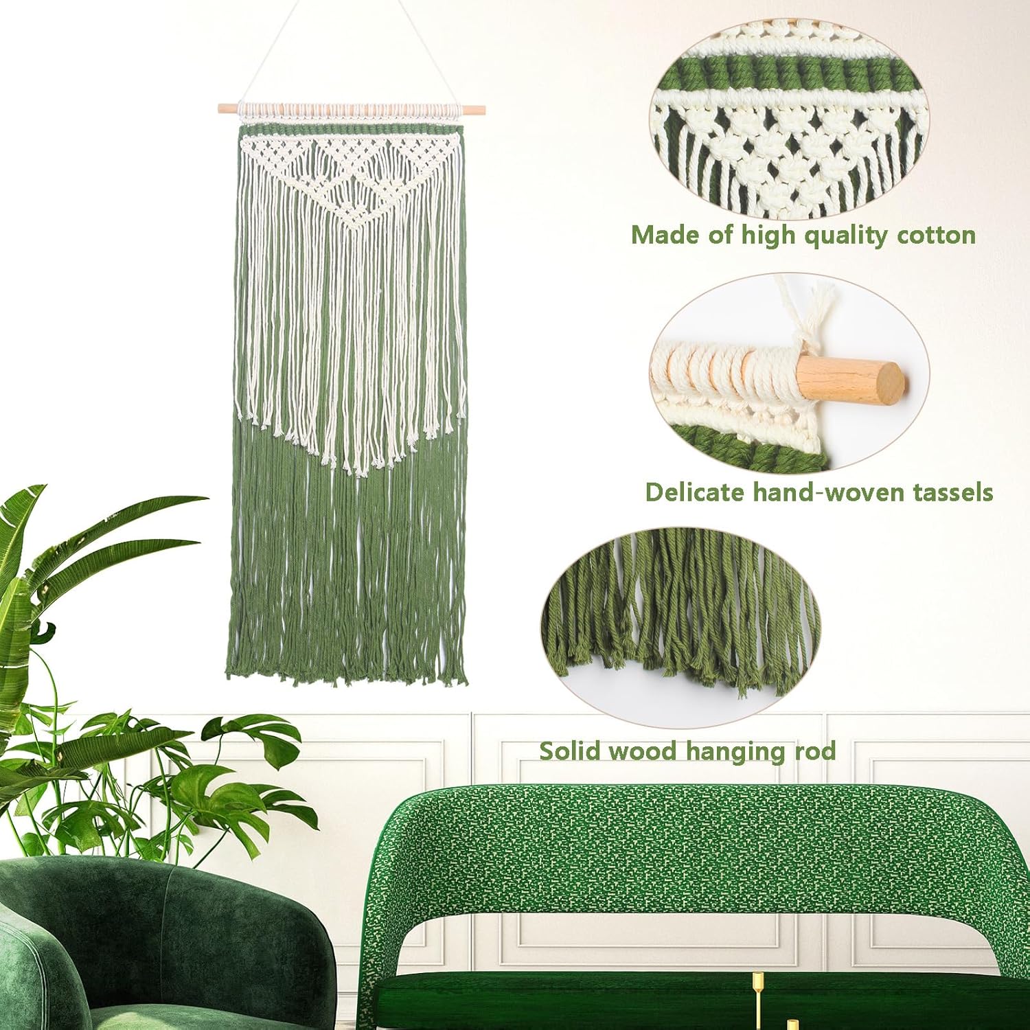 JONKASIPA Macrame Wall Hanging Bohemian Handmade Tassel Wall Art Decorations,Green Fringe Chic Home Decor for Apartment Dorm Living Room Bedroom