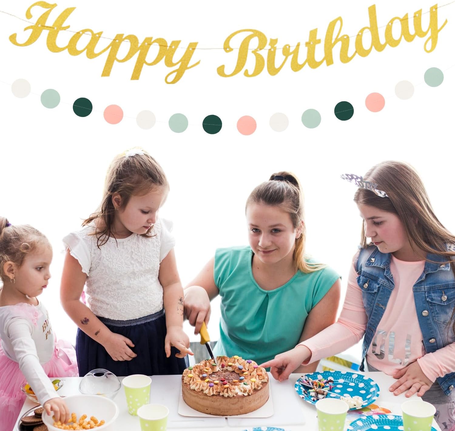 - ćSage green pink birthday decorations kit includesćThe party decorations kits include 8pcs sage pink white paper flower, 2pcs green fans,2pcs 8" white lanterns, happy birthday garland and sage pink white streamers.