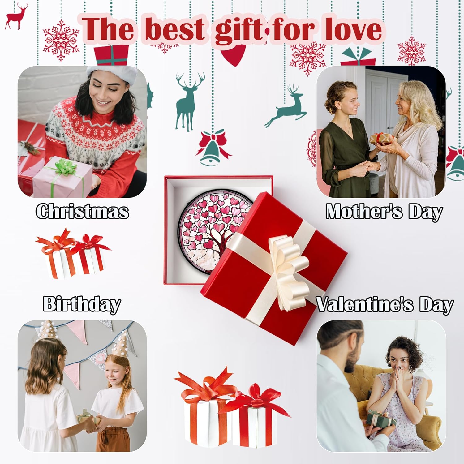 Stained Glass Window Hanging, Pink Love Heart Tree Suncatcher Hangings Beige Sun Catchers Decor for Birthday Holiday for Women, Men, Wife, Aunt, Mom 11.8IN