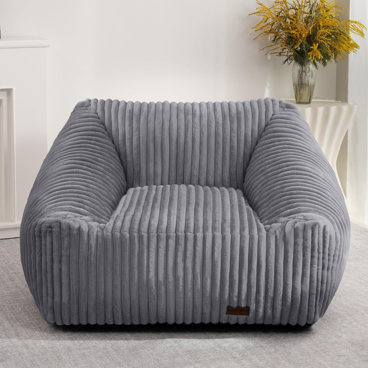 HABUTWAY Bean Bag Chair, Giant Bean Bag Chairs for Adults and Kids, Bean Bag Sofa, Lazy Floor Sofa, Faux Fur Beanbag Chair with Armrests for Living Room Bedroom (Grey)
