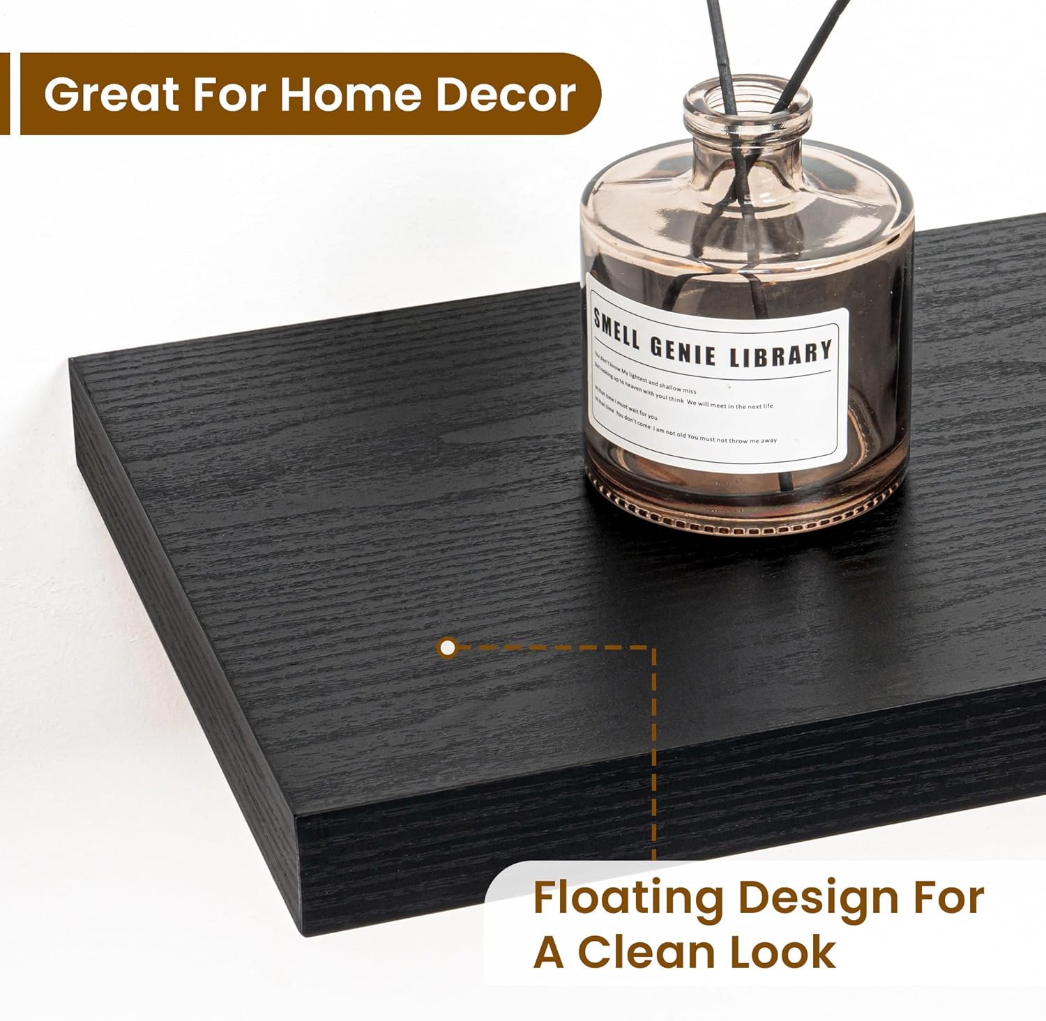 Fun Memories 48 Inch Deep Floating Shelves for Wall, 2 Pack of Long Wall Mounted Wood Shelves with Invisible Brackets for Bathroom, Bedroom, Living Room, Kitchen Decor and Storage, Black