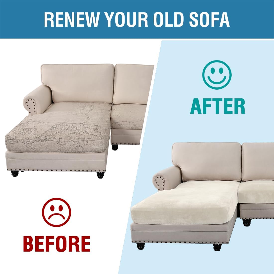 - INCREDIBLY COMFORTABLE VELVET: Products passed GLOBAL RECYCLED STANDARD certificate.This innovated stretch sofa slipcovers are constructed with 3 PIECES,including 1 Chaise cover and 2 individual cushion covers. Crafted from luxurious velvet plush fabric, feature thick, soft, smooth, anti-wrinkle, no fading, durable as well as highly stretch. Protect your cushion furniture from daily wears and tears, stains, kids, scratches from pet claws, dogs or accidental spills