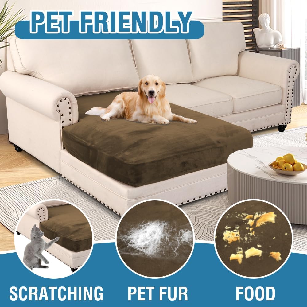 H.VERSAILTEX Velvet Stretch Individual Chaise Cover Sectional Couch Covers for L Shaped Sofa Both Left/Right Furniture Protector Seat Cushion Sofa Cover (1 Piece Chaise Cover, Bronze Brown)
