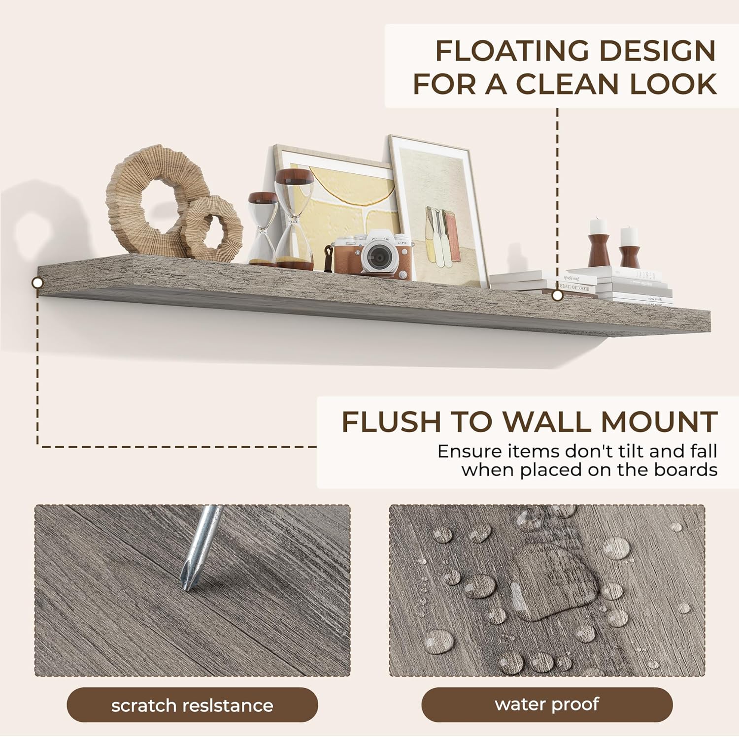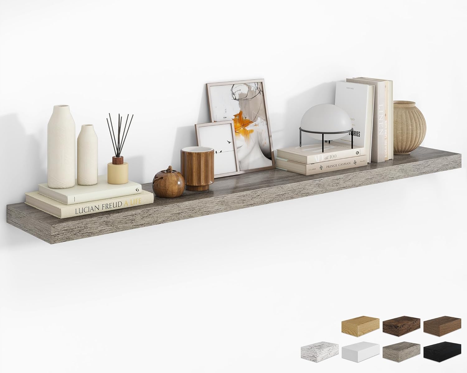 RICHFOCUS 72Inch Floating Shelves for Wall 1 Pack Shelves for Bedroom|Kitchen|Bathroom Wall Mounted Rustic Wood Floating Shelf with Invisible Brackets for Books|Storage|Decor, Grey