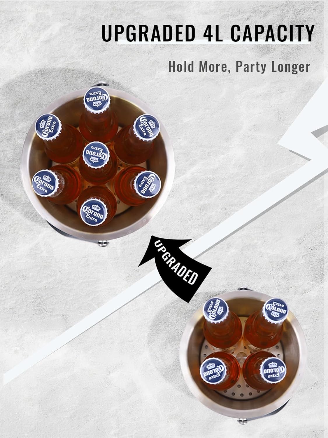 - PARTY PERFECT: This 4L large ice bucket is ideal for parties, home bars, picnics, BBQs, beaches, patios, restaurants, pool parties, weddings, graduations, and more. Keep cocktails, wine, champagne, whiskey, vodka, beer, and soda perfectly chilled. Stay cool this summer with our ice bucket for parties with lid