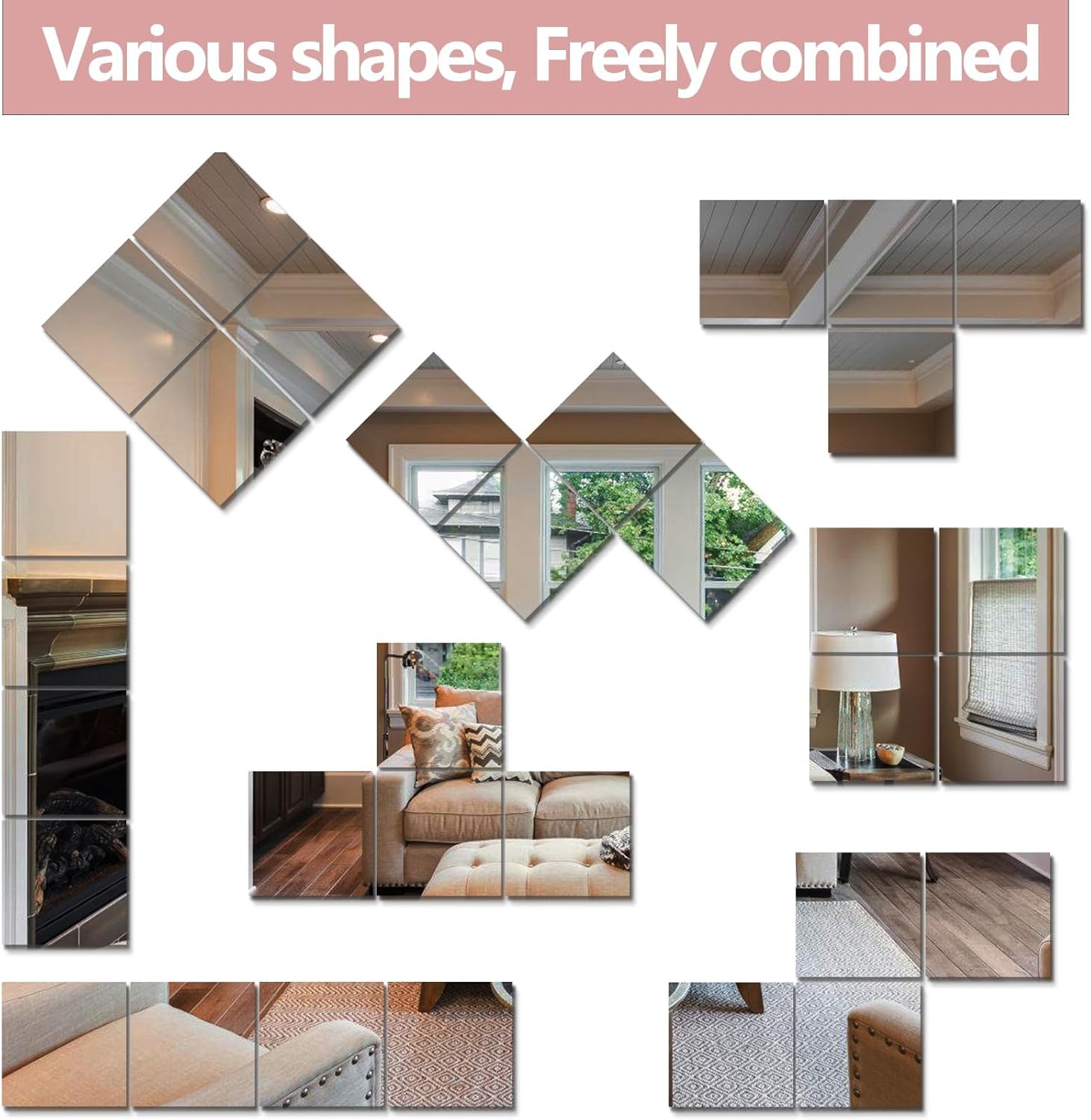 - (High definition): Composed of 4 packages - each 13.5inch x13.5inch image is very clear and distortion free, freely combined to decorate one's own room, can also be used as a full body mirror