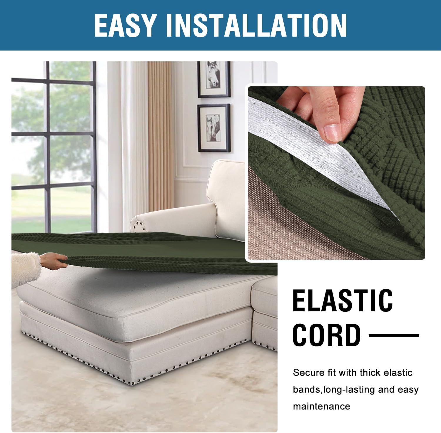 H.VERSAILTEX Super Stretch Individual Chaise Cover Sectional Couch Covers for L Shaped Sofa Both Left/Right Featuring Thick Jacquard Textured Twill Fabric (1 Piece Chaise Cover Large, Olive)