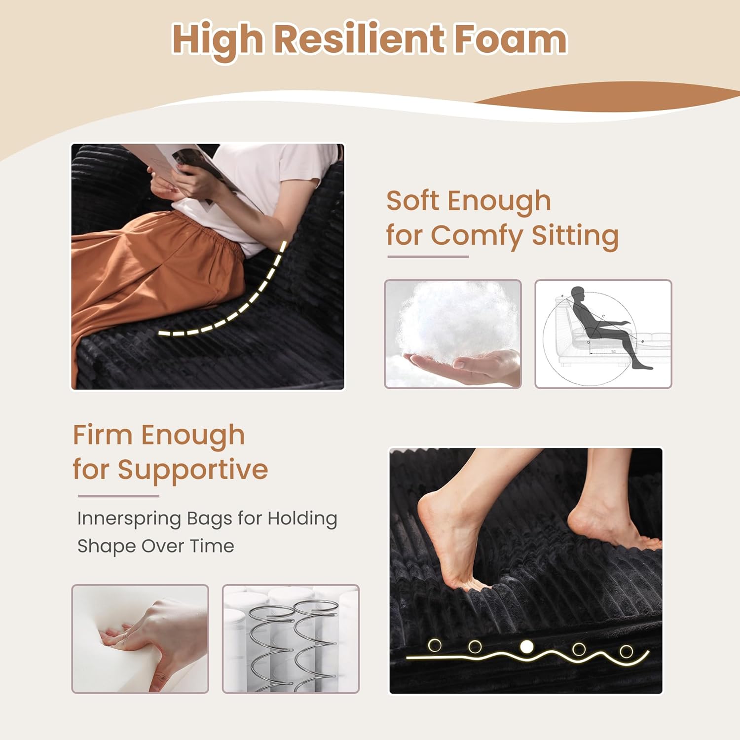 HOOOWOOO Cloud Sectional Couches for Living Room,Modular Sectional Sofa No Assembly,110X79 Inch Plush Corduroy Large U Shaped Floor Couch Set with Deep Seat Chaise(Black)