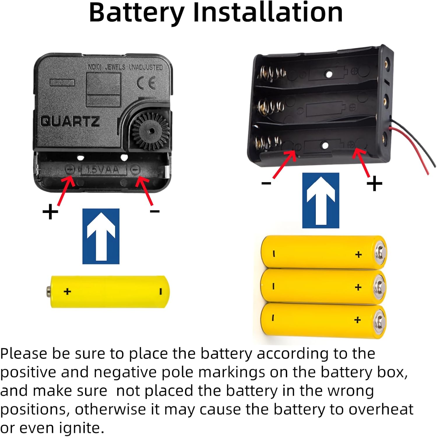 - BETTERY OPERATTED: The clock hands and the gears are operated by two separate battery compartments, 2 AA batteries work for the moving gears, 1 AA battery works for the clock hands, they can run simultaneously or independently (Note: Battery is not provided )