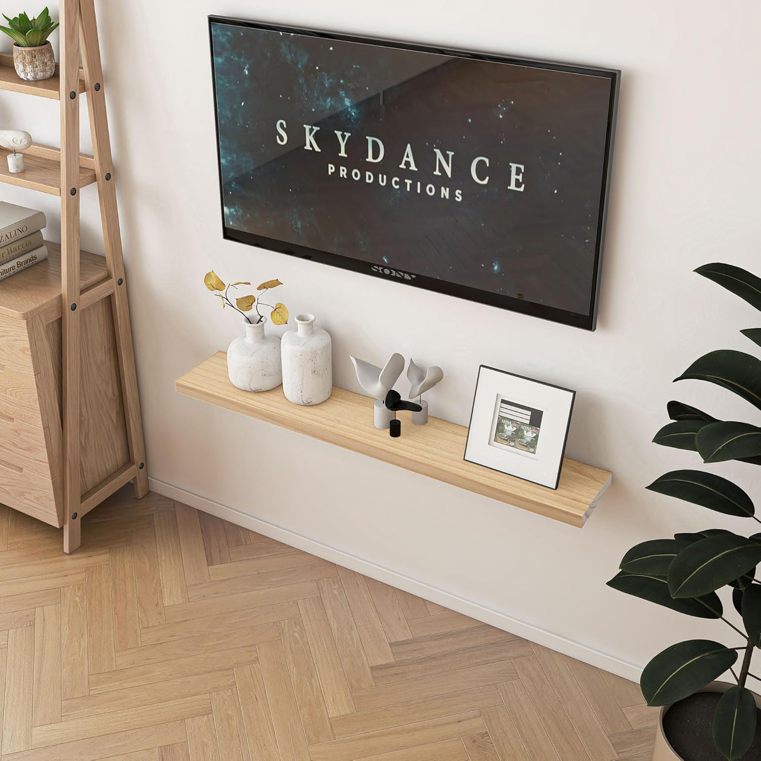 - Extra Deeper & Thicker for Storage - Each board measures 48"W x 8"D x 1.4"H. Extra deeper and thicker design in order to bring maximizes storage space and weight capacity, even hold up to 60 lb. This floating shelf taking up zero square feet, reduces clutter and highlights dΓ©cor in compact spaces. It can help make full use of the empty wall, making it much more space-saving and making your room look larger and tidier.