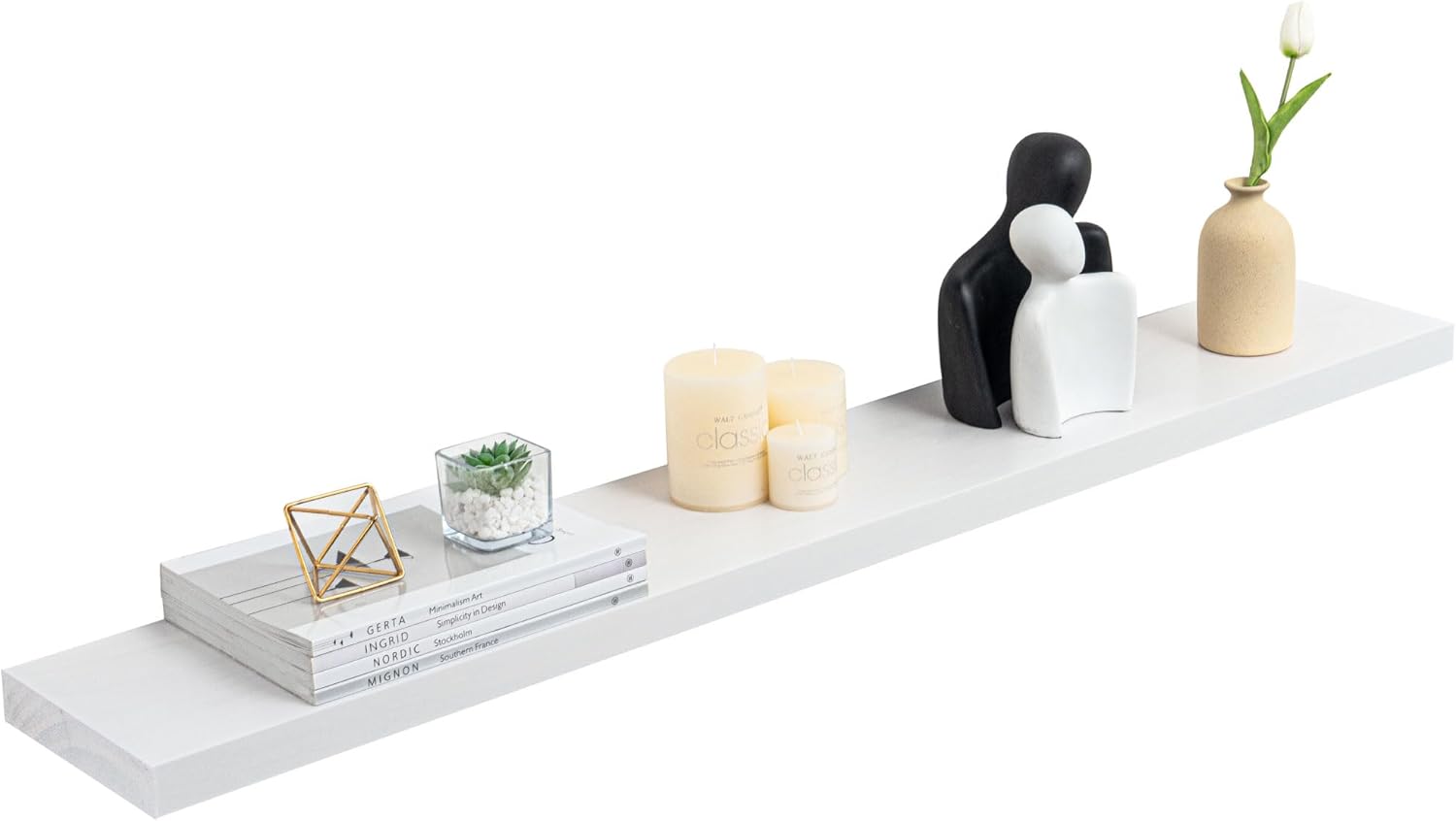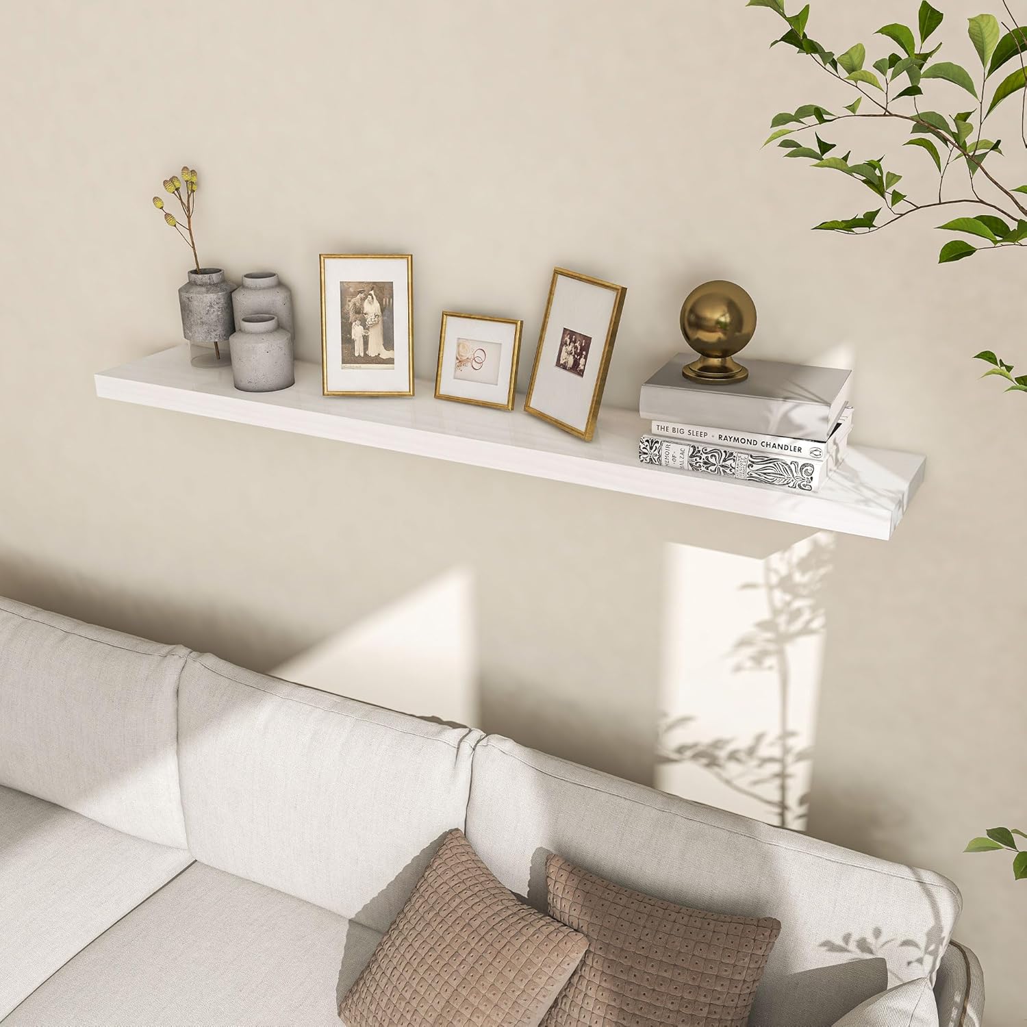 - Extra Deeper & Thicker for Storage - Each board measures 48"W x 8"D x 1.4"H. Extra deeper and thicker design in order to bring maximizes storage space and weight capacity, even hold up to 60 lb. This floating shelf taking up zero square feet, reduces clutter and highlights dΓ©cor in compact spaces. It can help make full use of the empty wall, making it much more space-saving and making your room look larger and tidier.