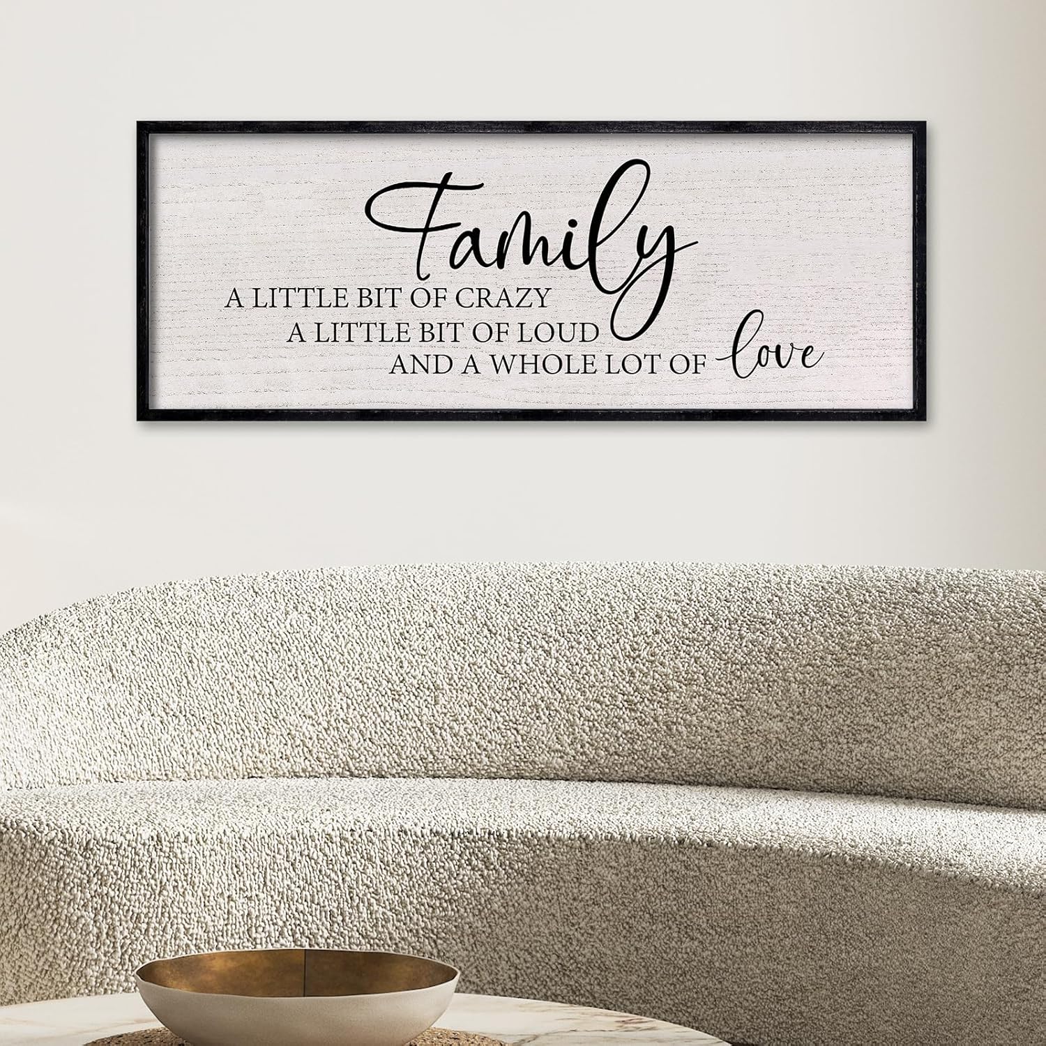 LuZhiQiang Family A Little Bit of Crazy Sign Wall Decor 40"x15" Large Family Signs Wood Framed Hanging Wall Art (Black)