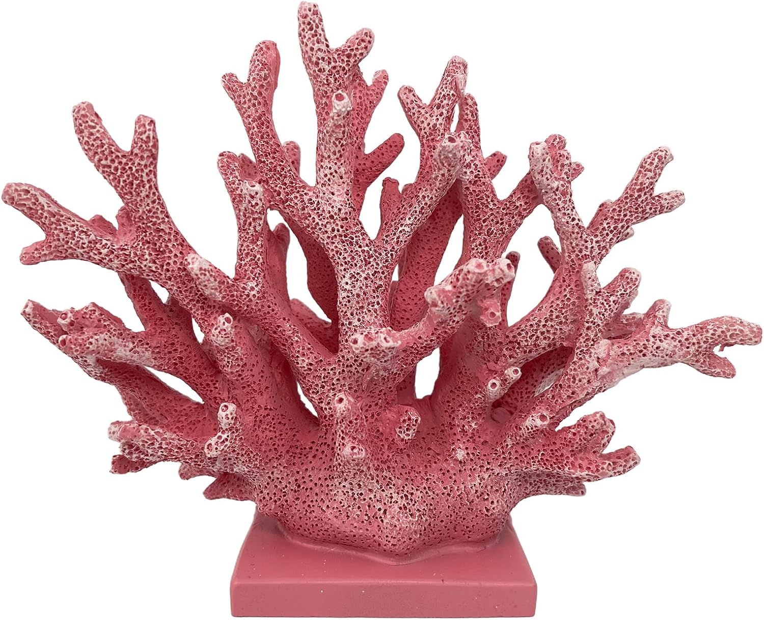 5.8" H Pink Coral Decor - Resin Coral Statue, Nautical Decor for Home, Bedroom, Bathroom, Living Room, Ocean Themed Cabinet Shelf Tabletop Decoration