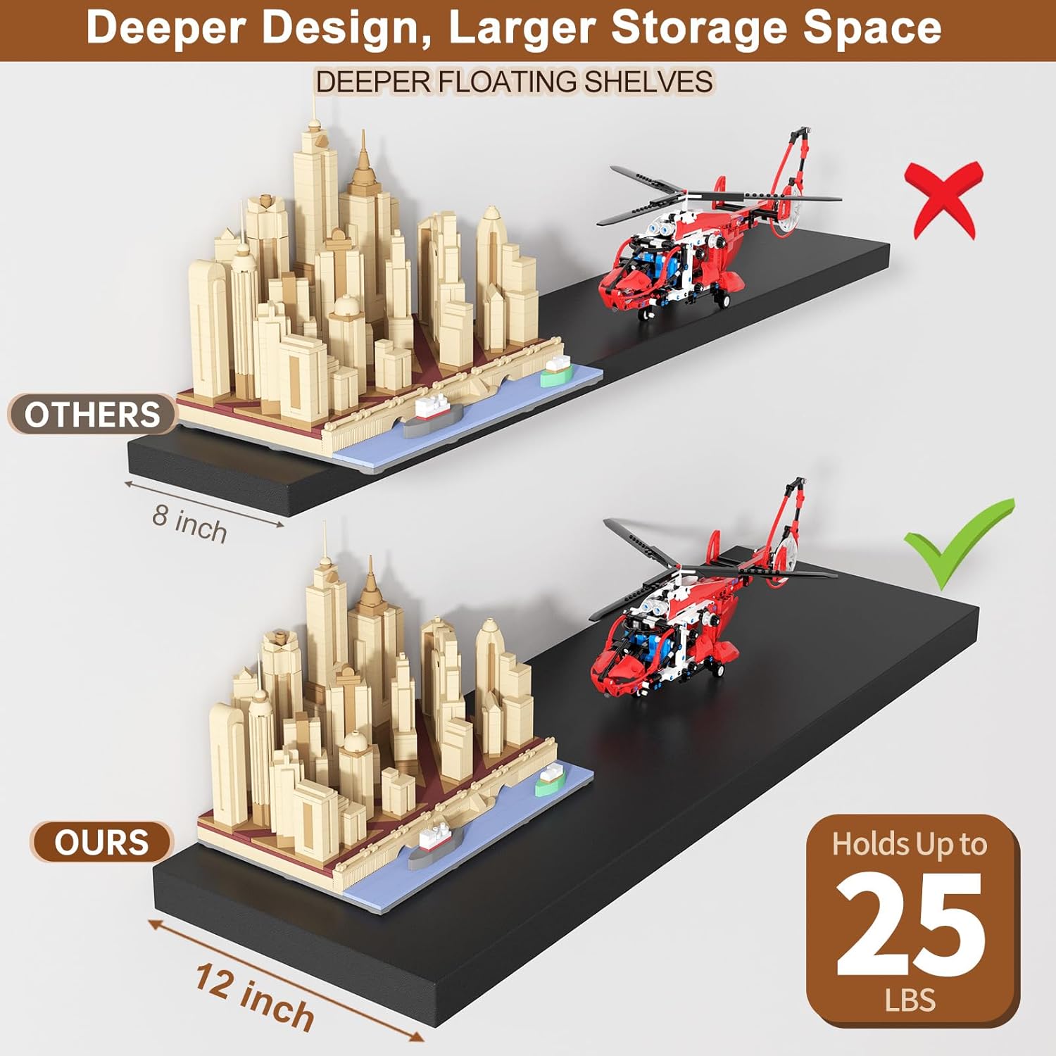 • 【Extra Deep 12" Storage】- These deep floating shelves for wall provide 12-inch depth for generous storage of books, decor, and kitchen essentials. Their expanded surface area maximizes organization while keeping items within easy reach. Perfect for displaying collectibles or storing daily necessities!