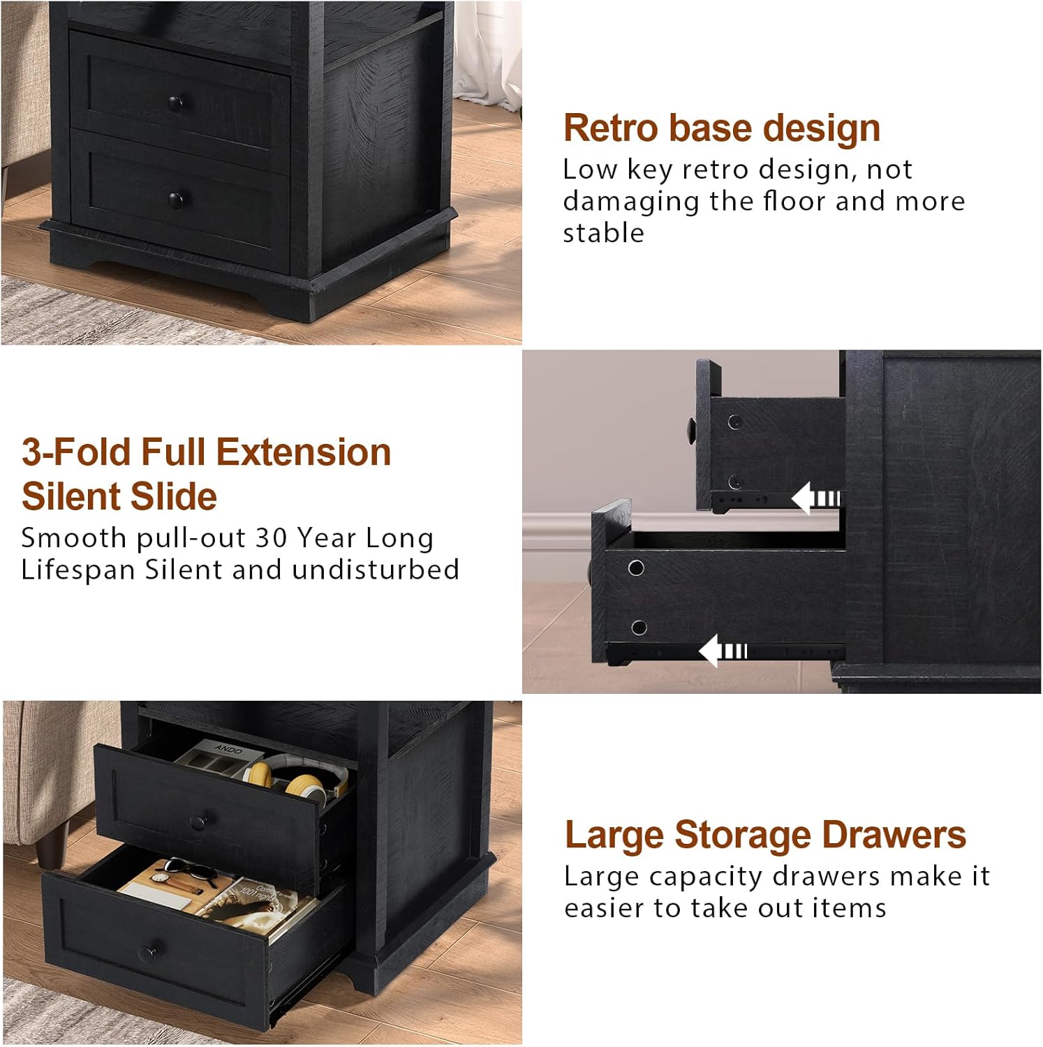 - 2 Drawers:The open compartment beneath the tabletop, coupled with 2 large drawers, offers ample storage space to keep your area organized and clutter-free. The end table features high-quality metal silent slides, ensuring each drawer opens with a smooth, gentle motion.