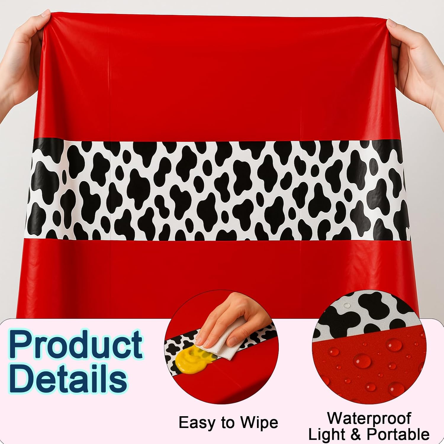 - Premium-Grade Material: Crafted from high-quality plastic, our cow-print tablecloths boast vibrant, fade-resistant colors and durable construction. Lightweight yet tear-resistant, they maintain their cheerful appearance through multiple uses, making them ideal for buffet tables, outdoor picnics, farmhouse dinners, and everyday kitchen use.