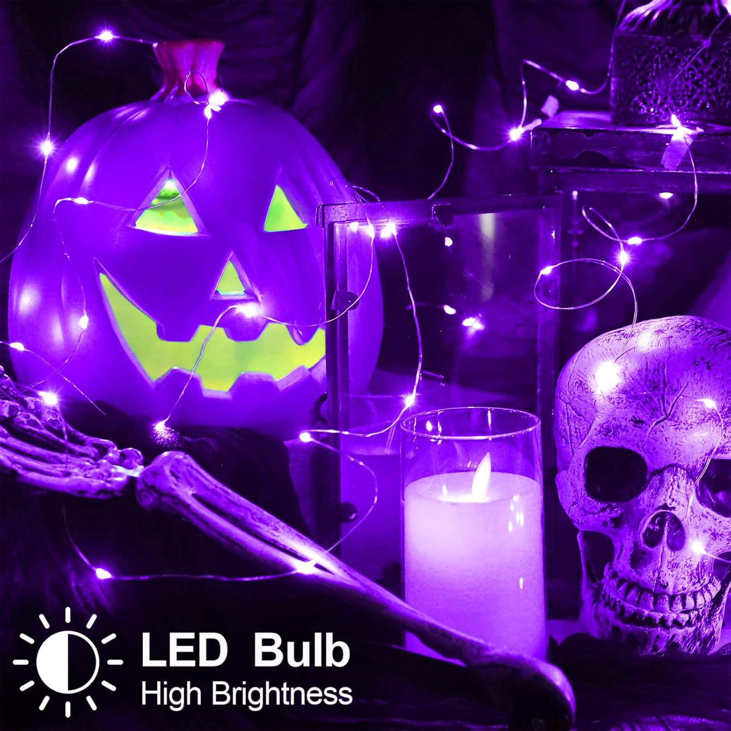 Halloween Christmas Decorations Purple Fairy String Lights Indoor, Battery Operated with Timer, 2Pack Total 33FT 100 Led Mini Battery Powered Twinkle Mason Jar Waterproof Firefly Lights DIY Party