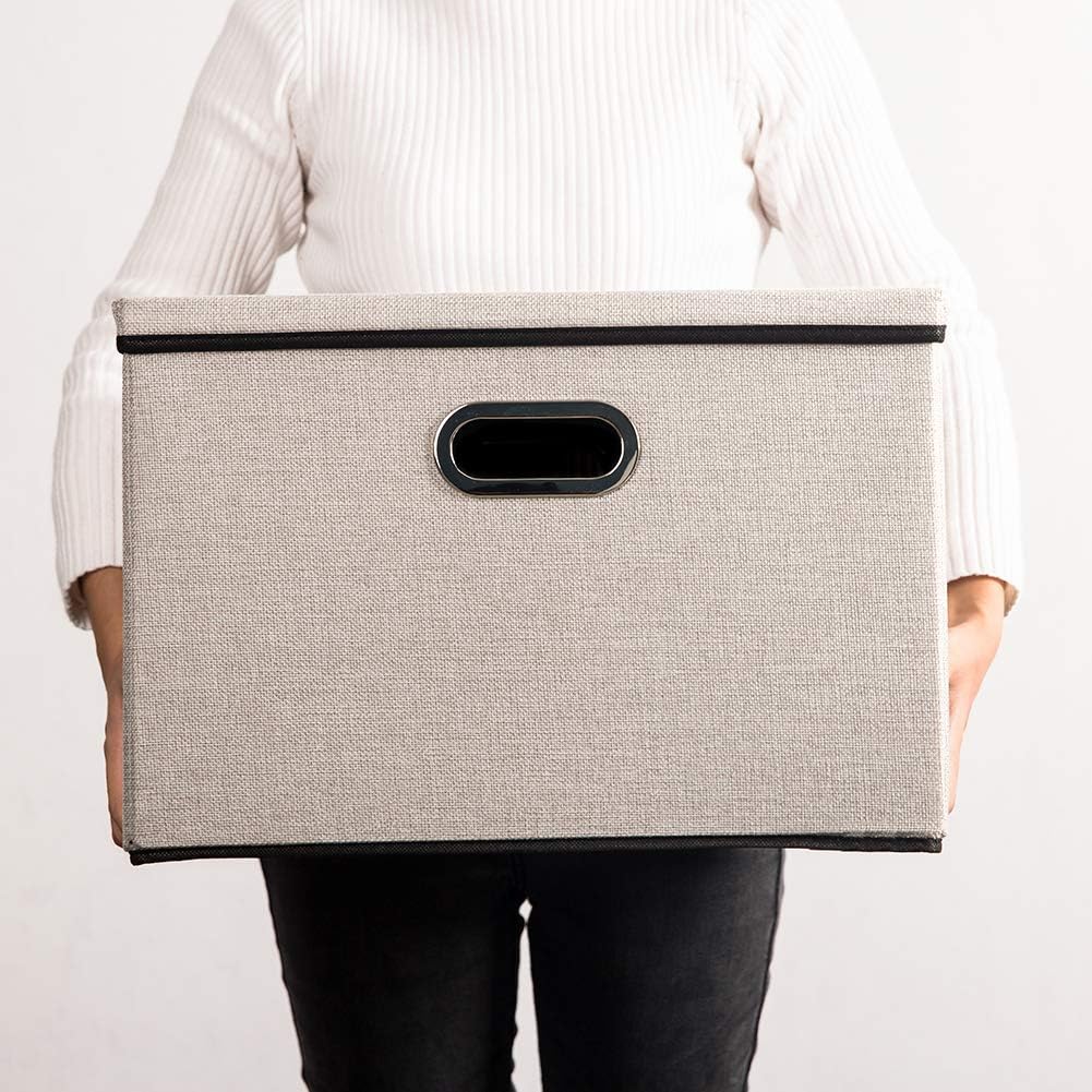 - 【Fashionable Bins】Designed to match interior decor and style in any room in the home or office. Enjoy the relaxing ambiance of the soft light gray and natural black neutral color scheme.